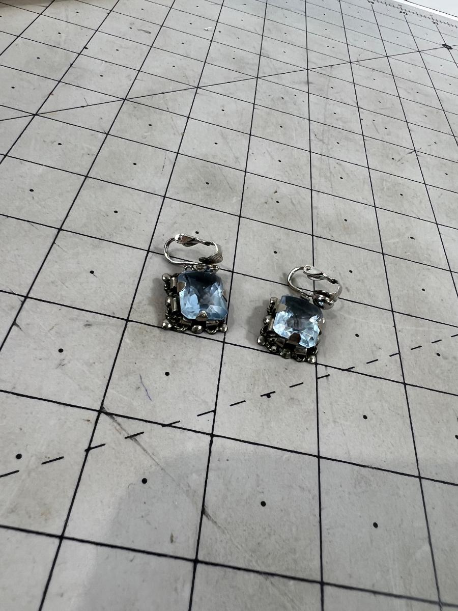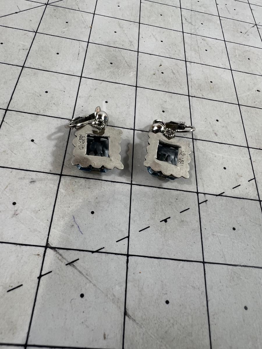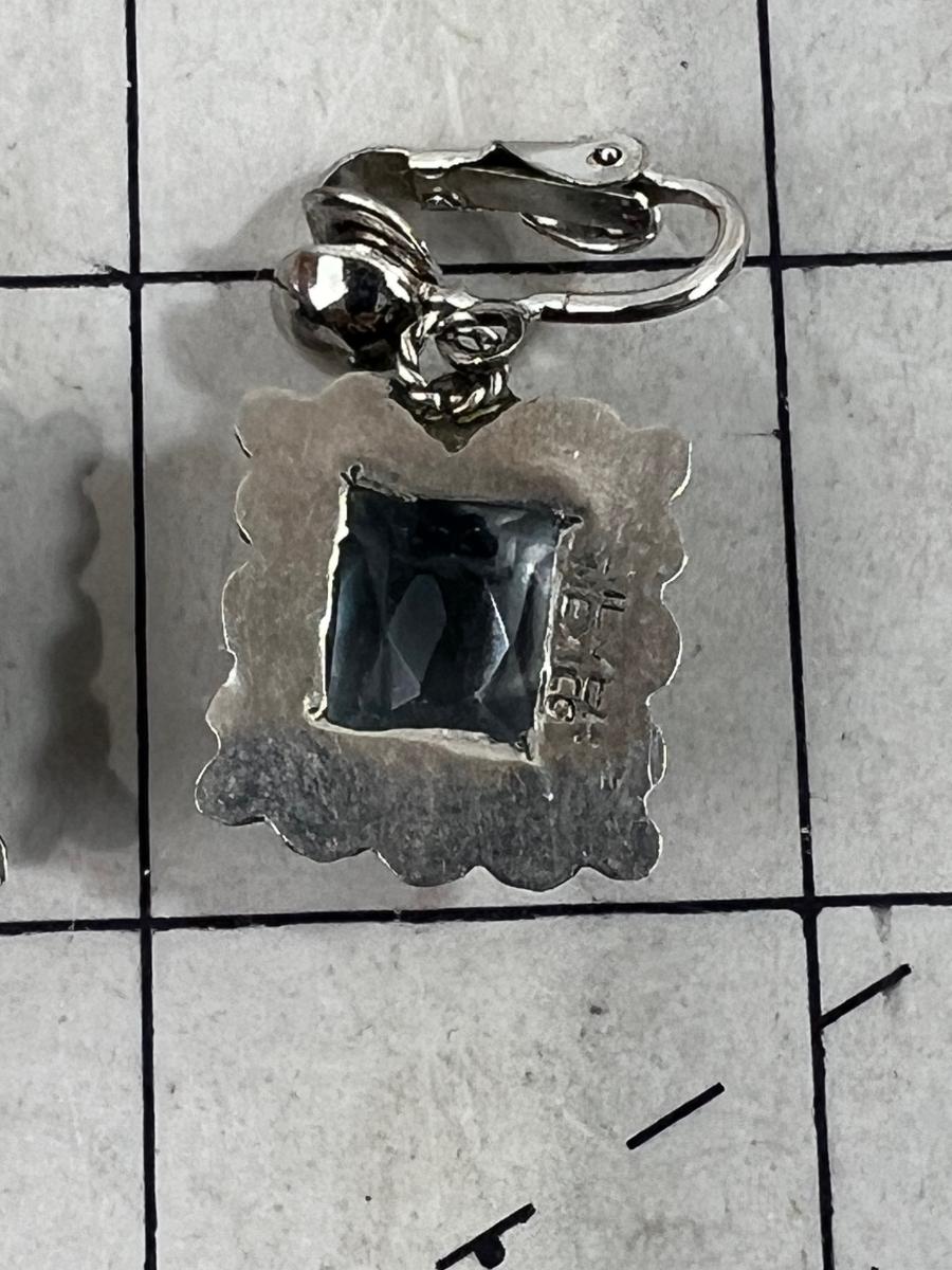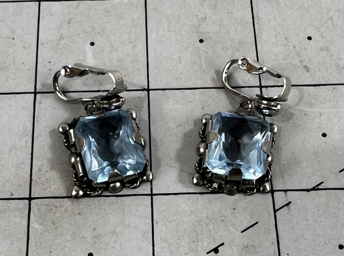 Pair of Large Faceted Aqua Marine Clip on Earrings, Marked Silver Mexico