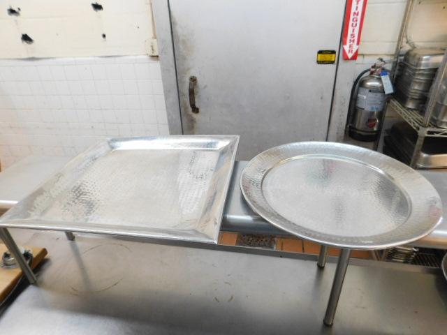 Pair of Large Food Service Polished Metal Serving Trays