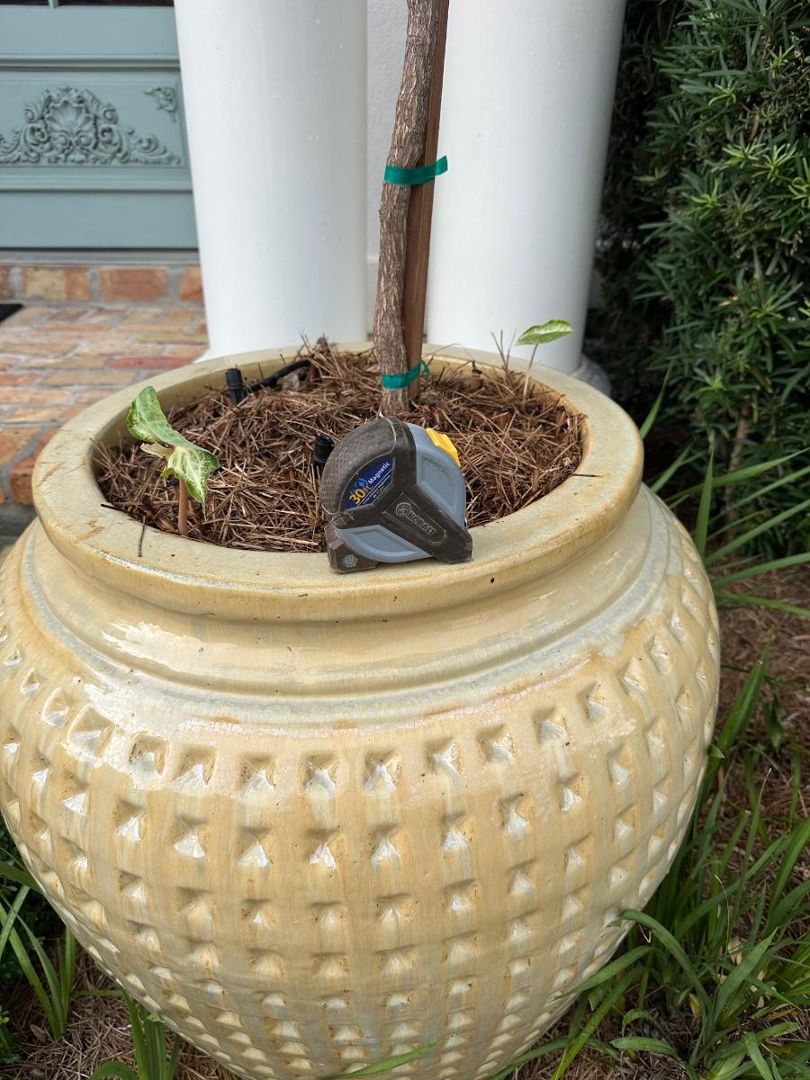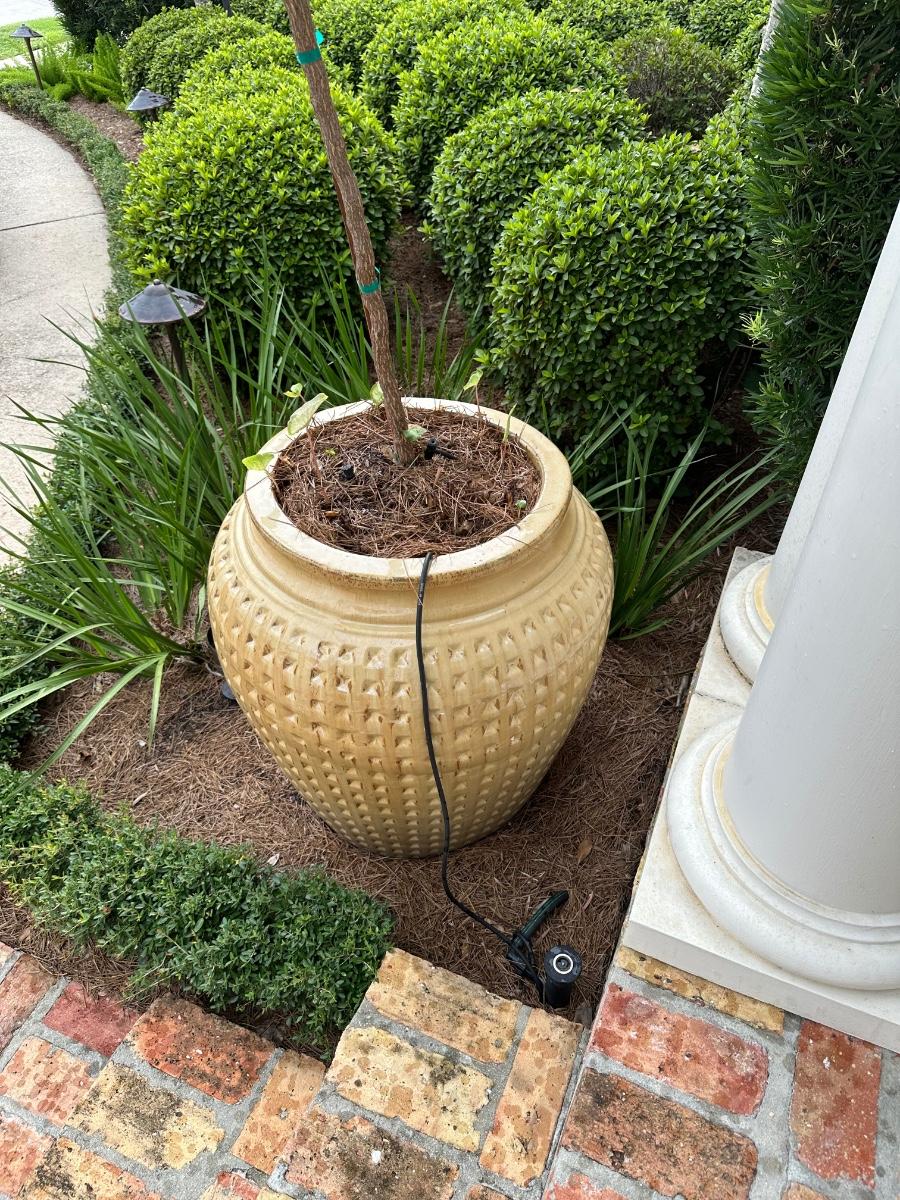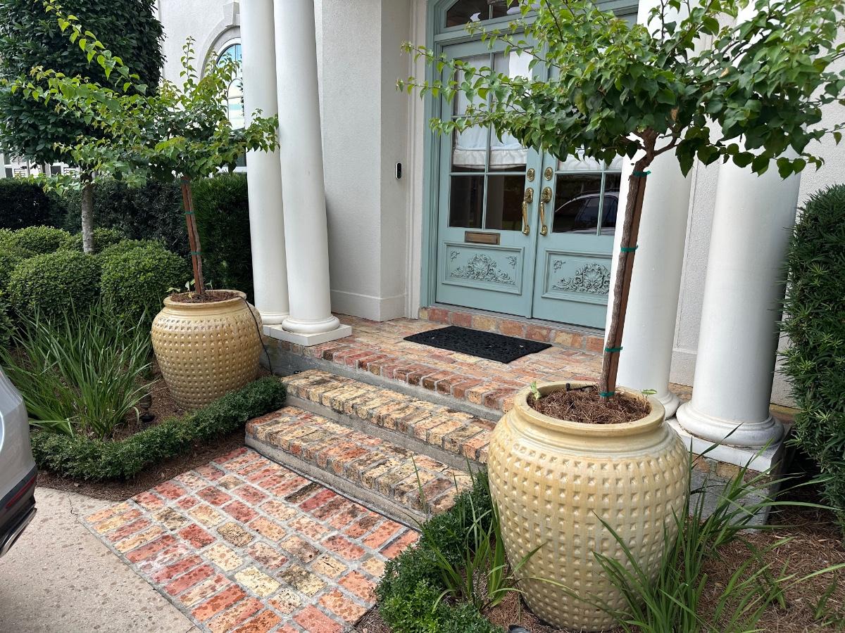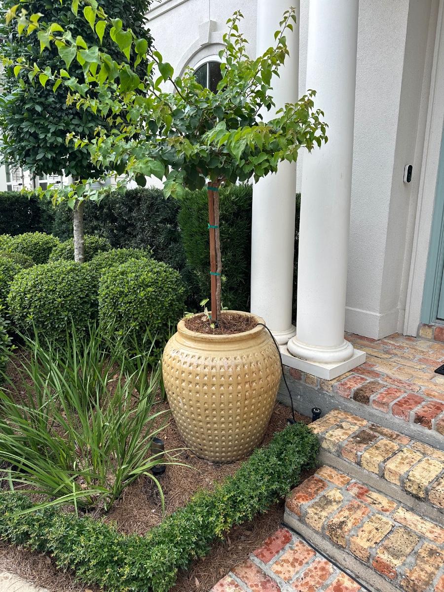 Pair of Large Glazed Ceramic Planters with Live Ornamental Trees – 30” Tall Pots