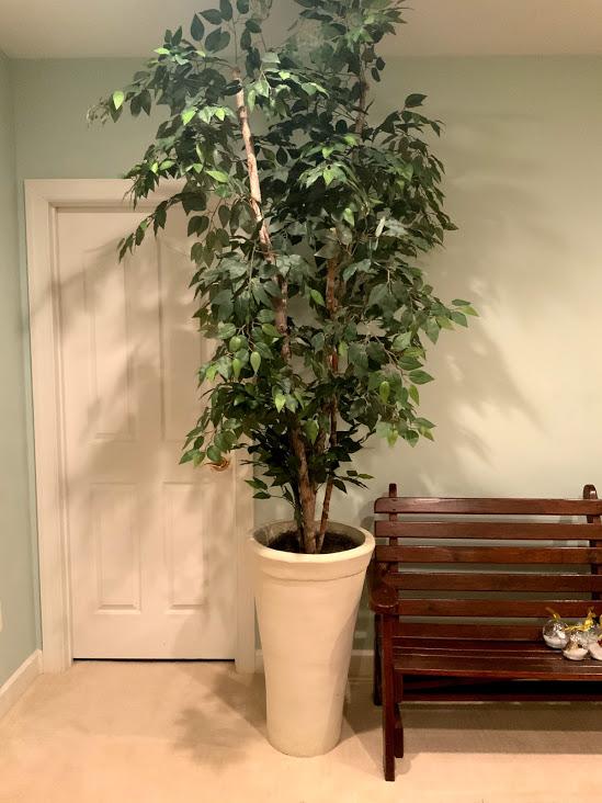 Pair of Large Hand Painted Terracotta Pots with Artificial Plants