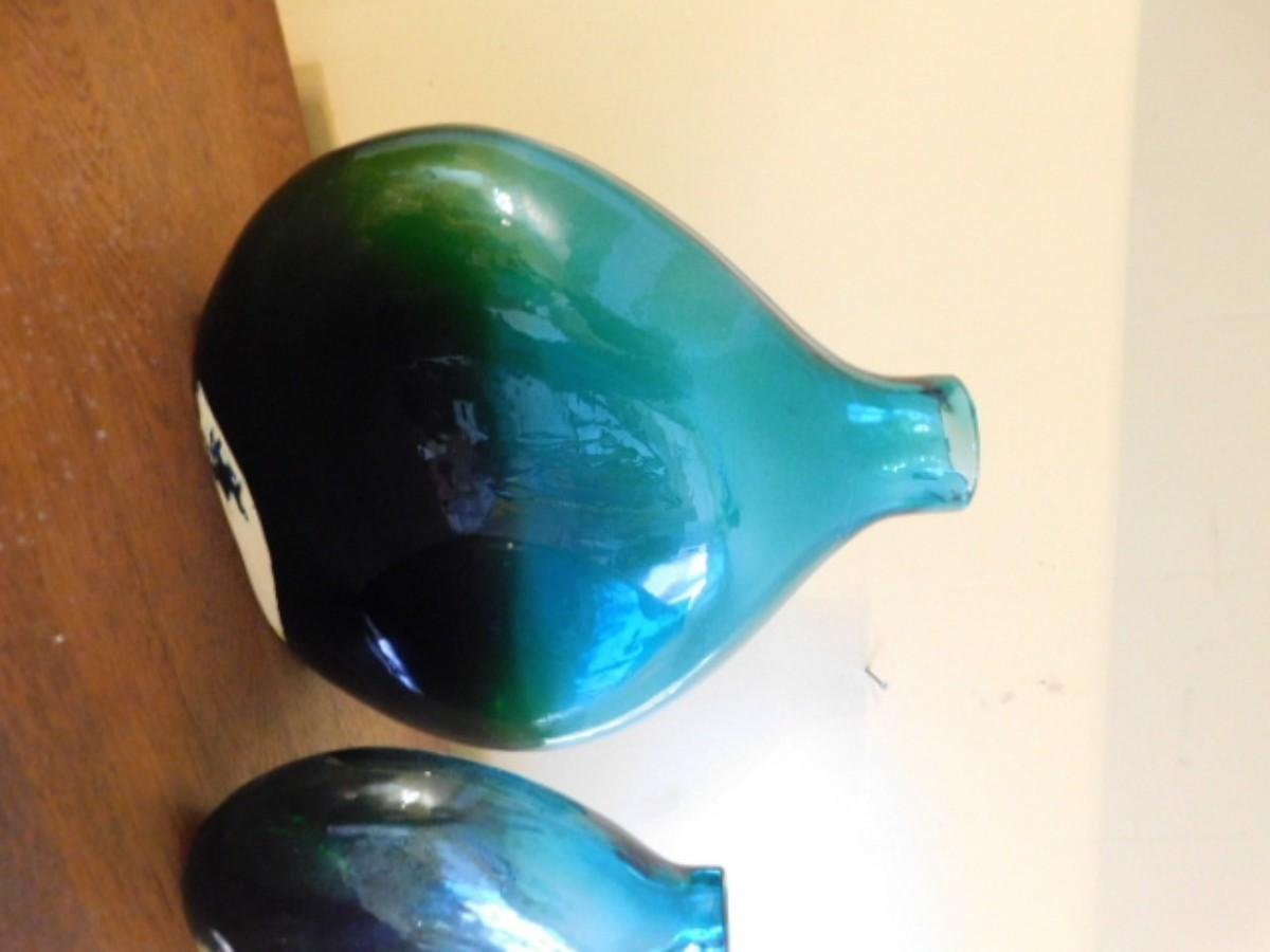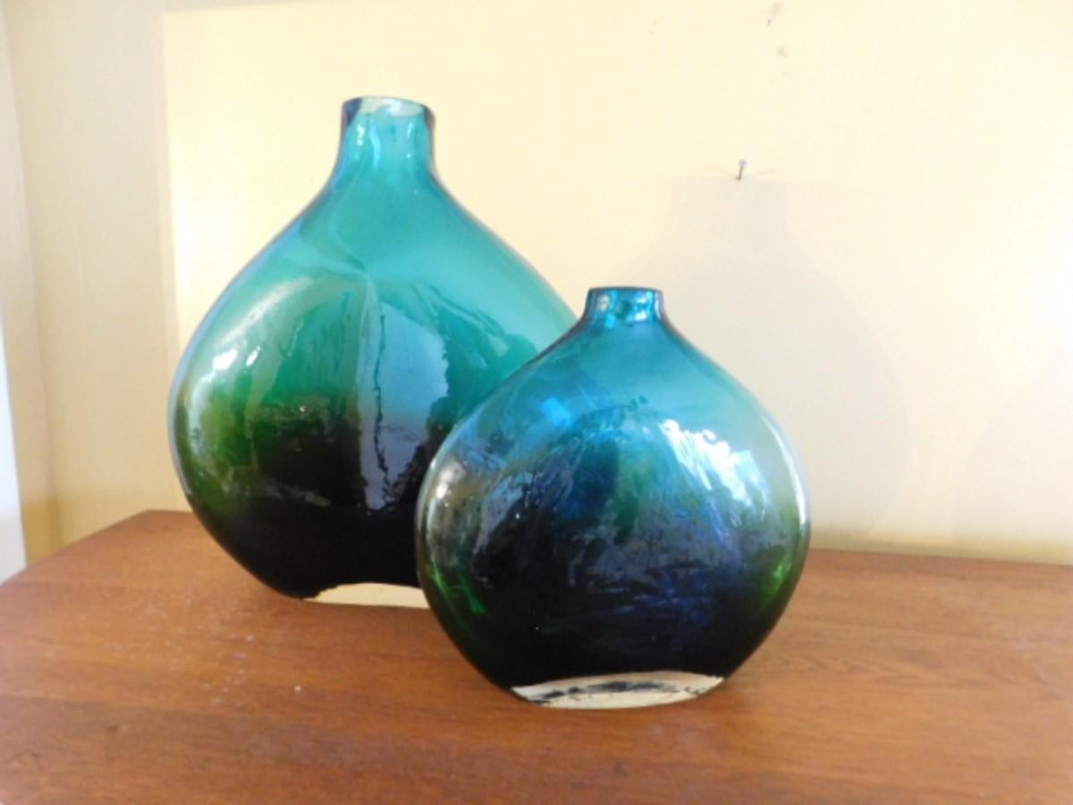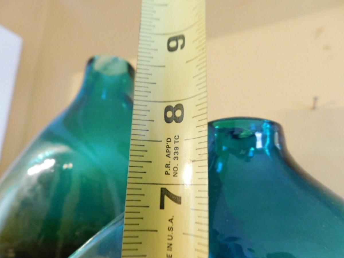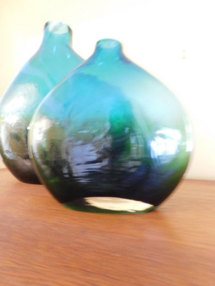 Pair of Large Heavy Green Glass Centerpiece or Table Vases