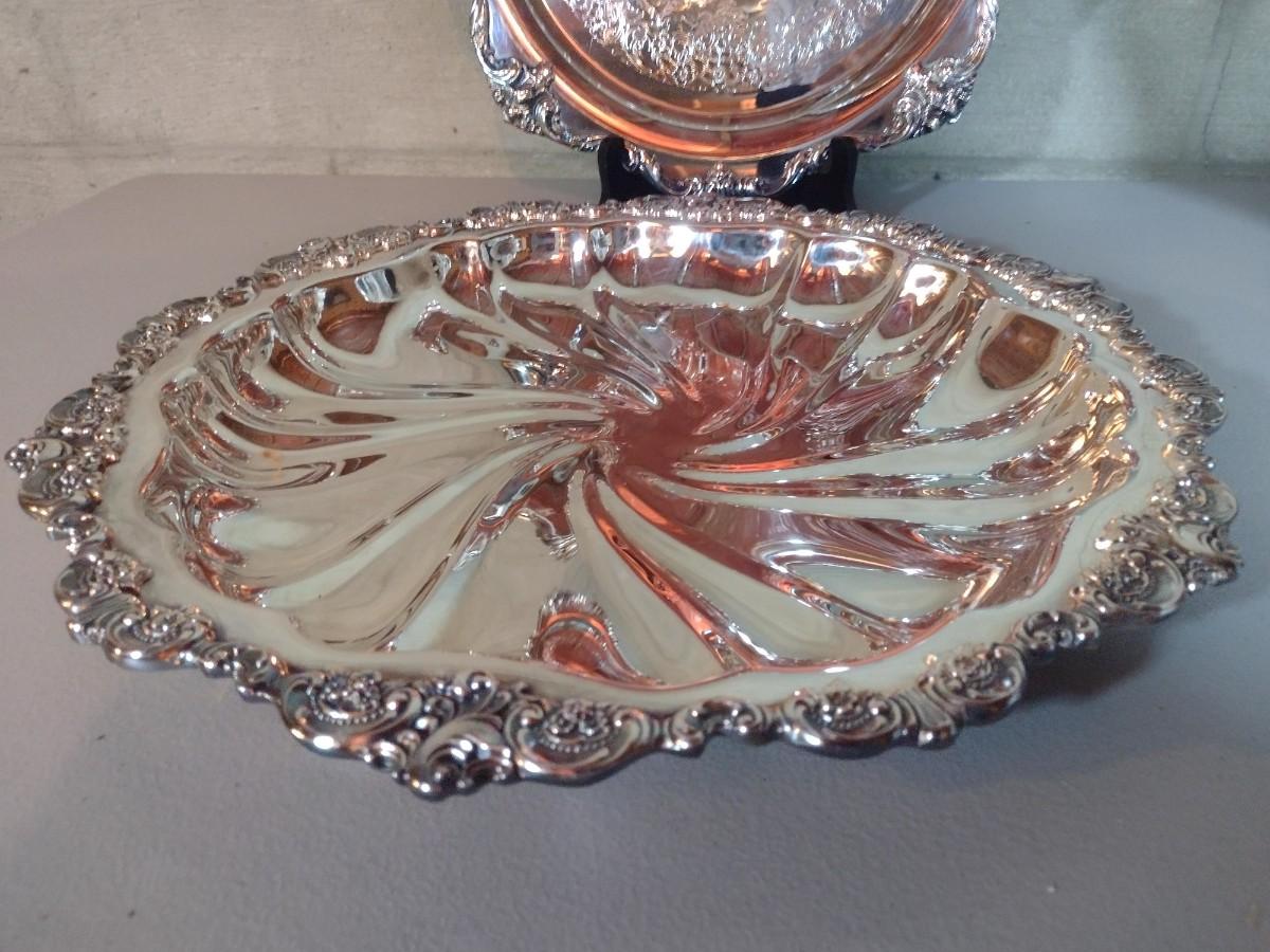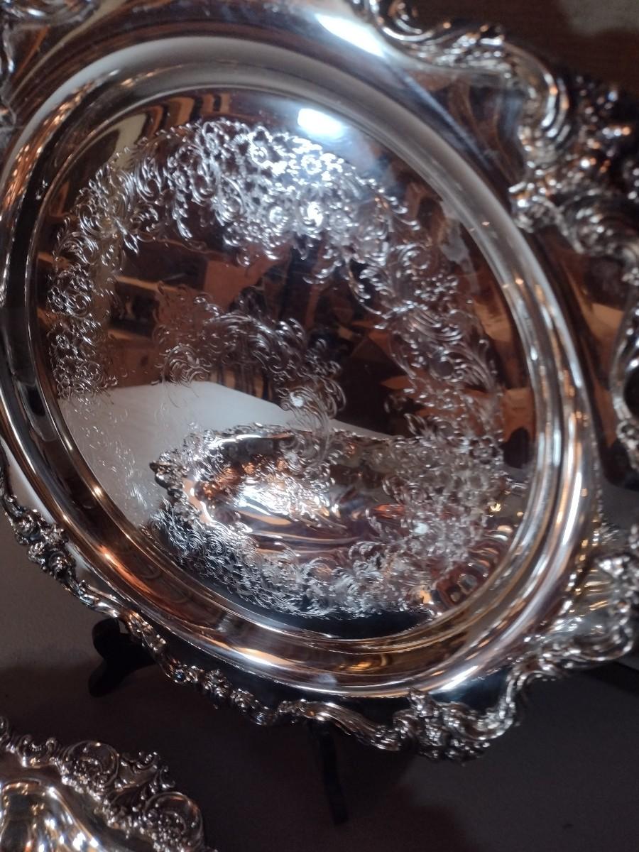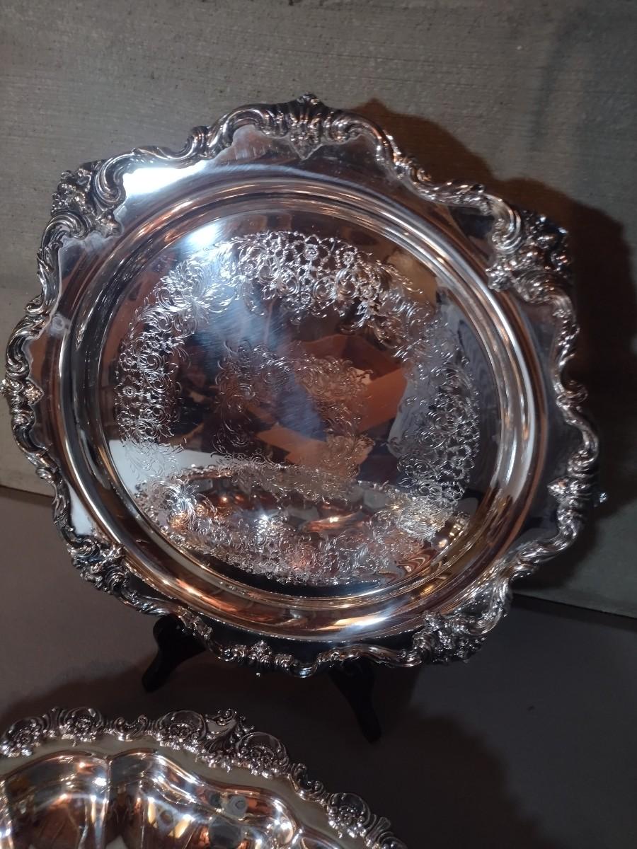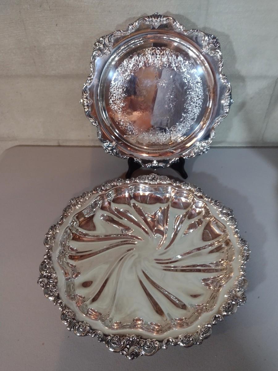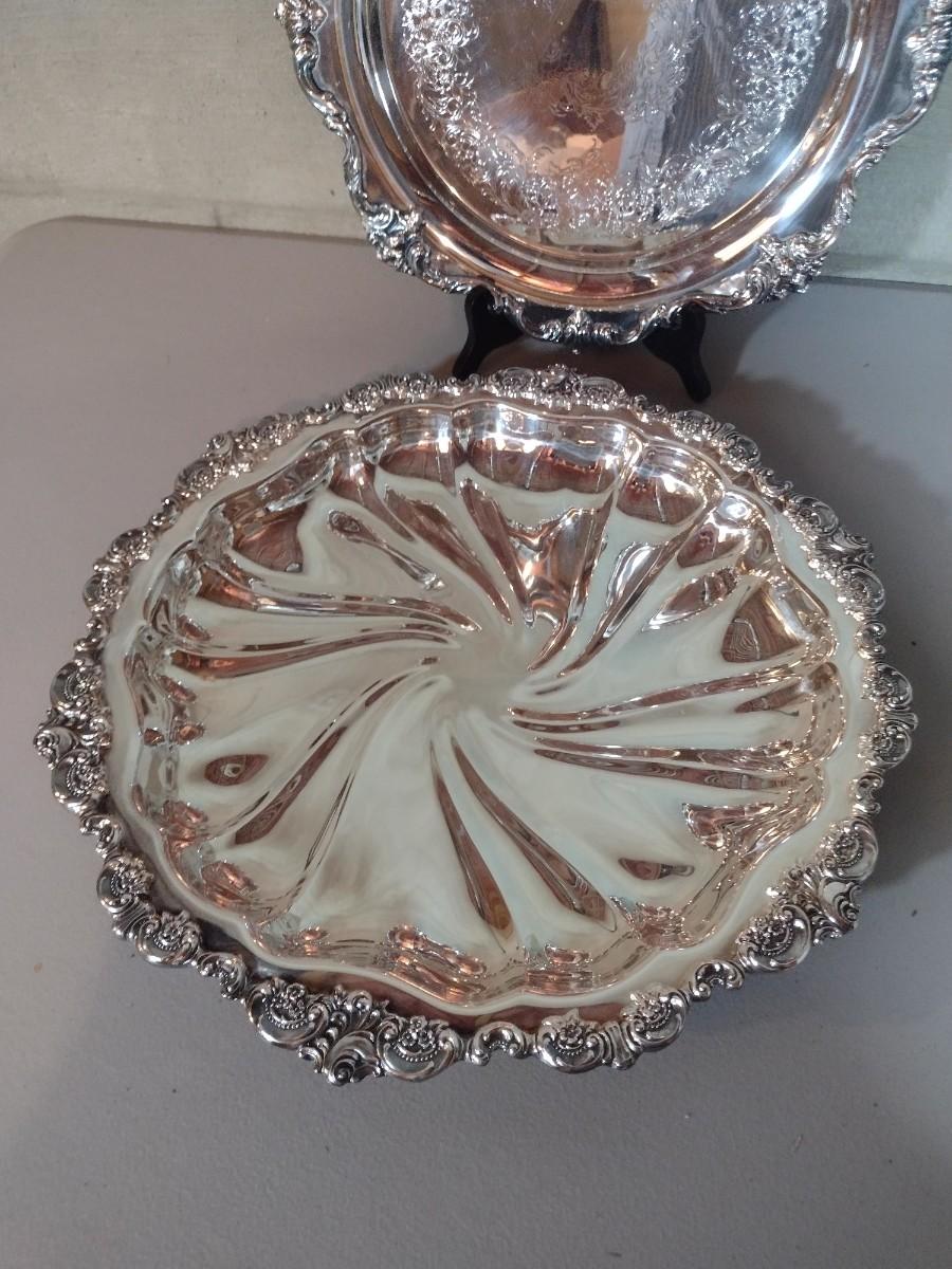 Pair of Large Highly Ornate and Detailed Silver Plate Round Serving Trays