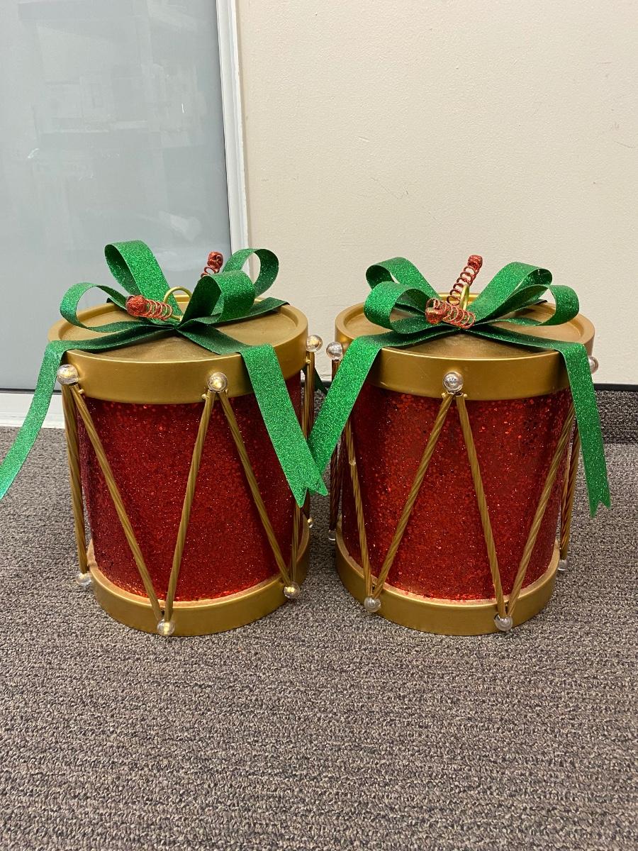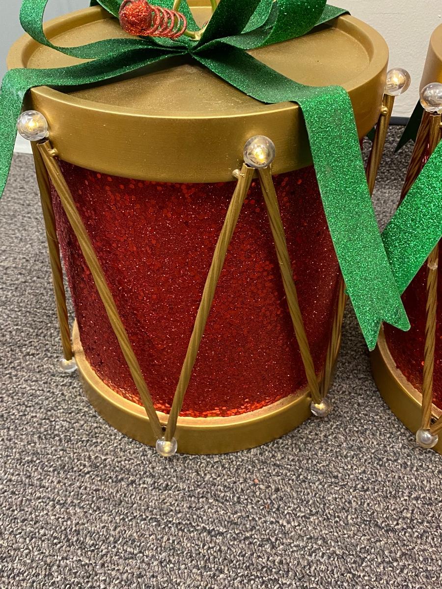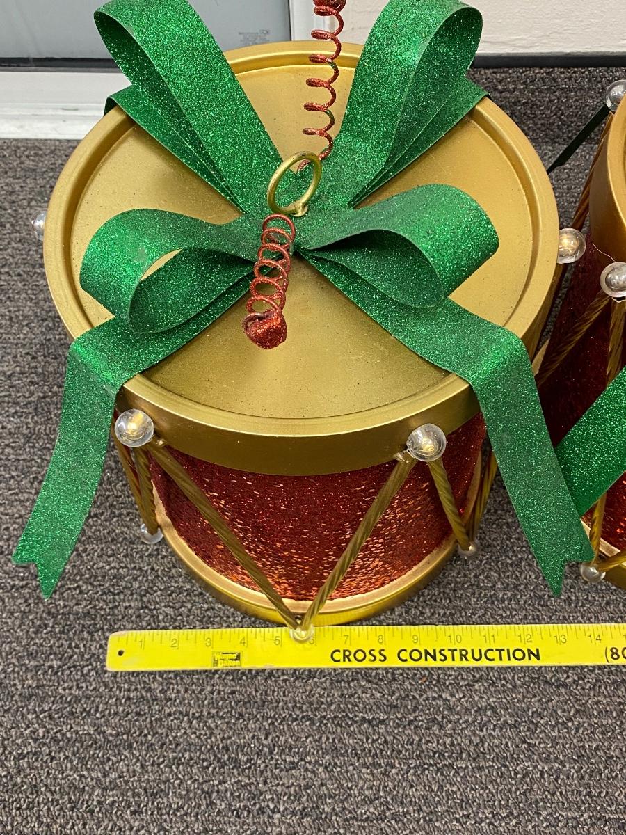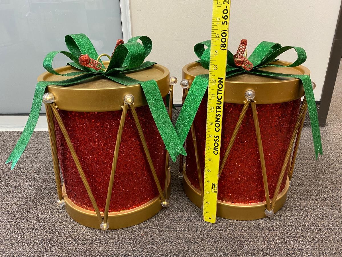 Pair of Large Lighted Metallic Christmas Holiday Drum Displays
