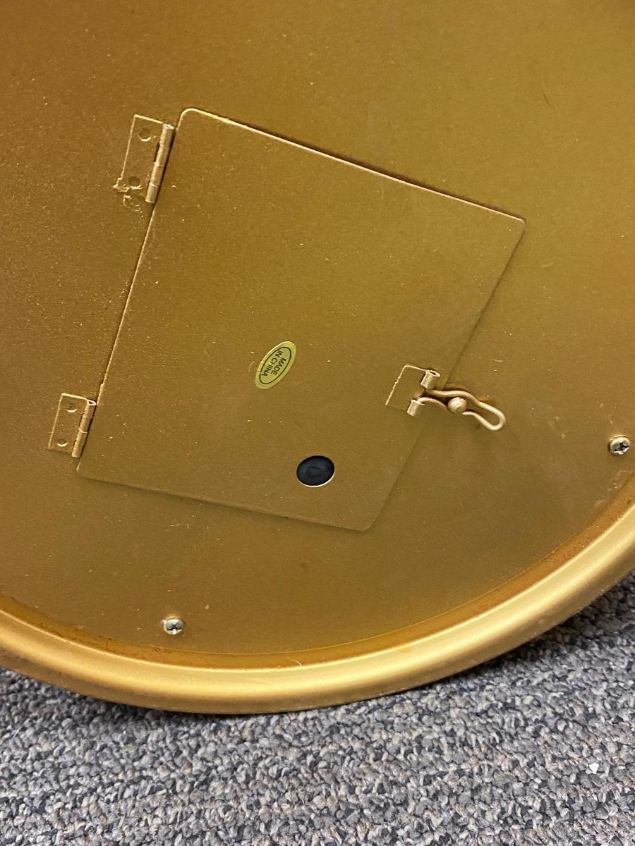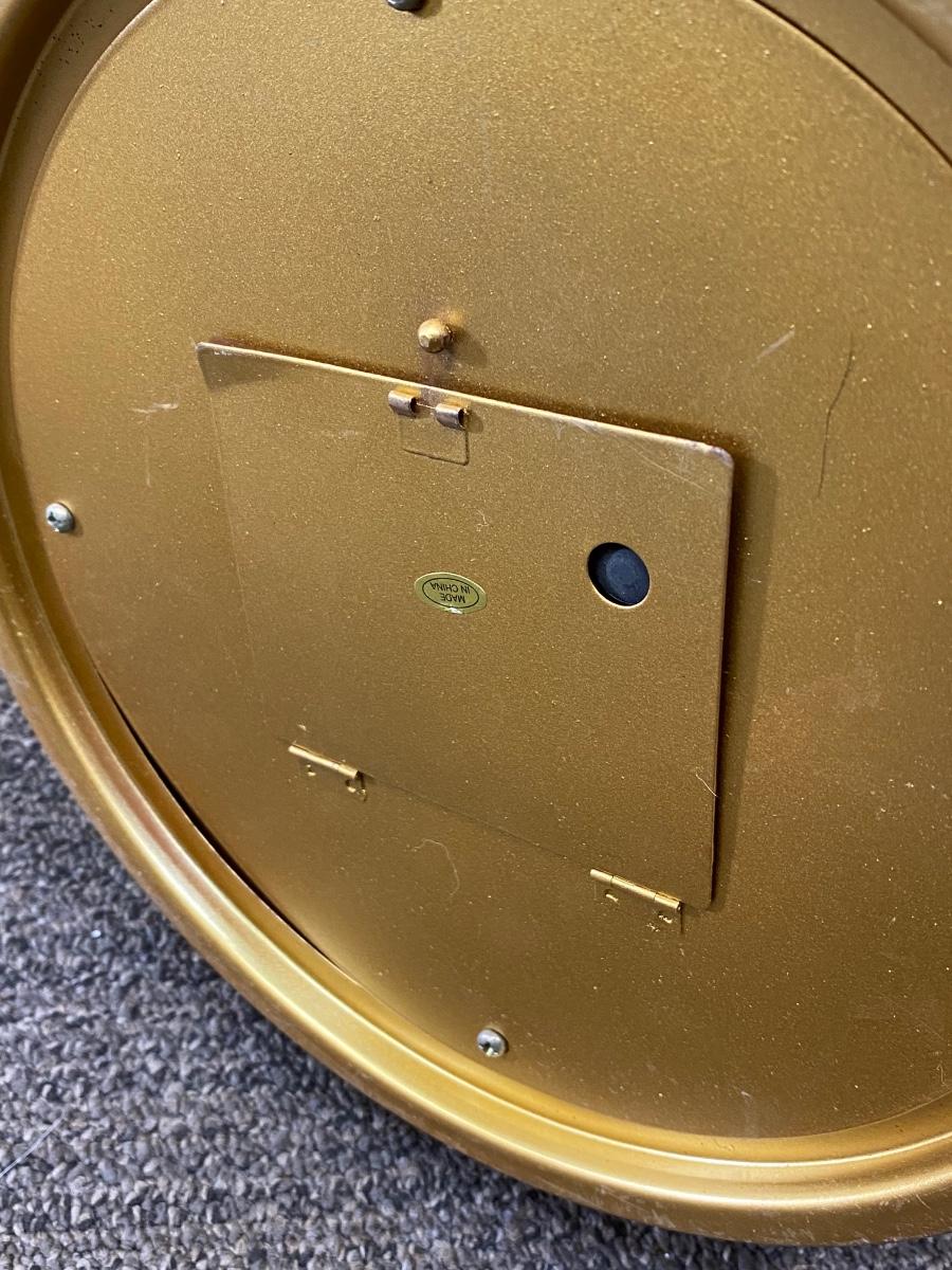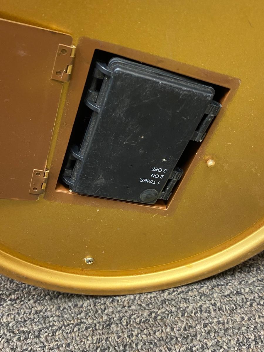 Pair of Christmas holiday drum displays. Lighted displays, one is working the other is untested. Metallic glitter covered with gold painted details. Large size, about 15". Battery box and power is in the bottom of display.