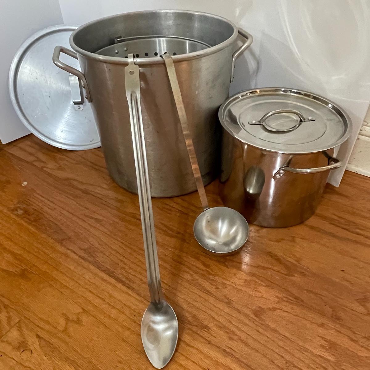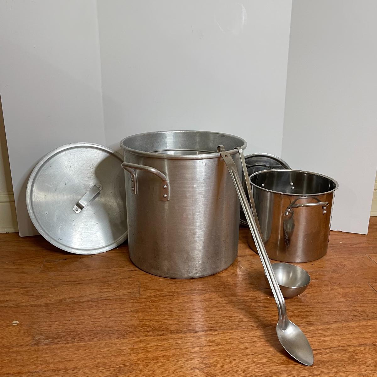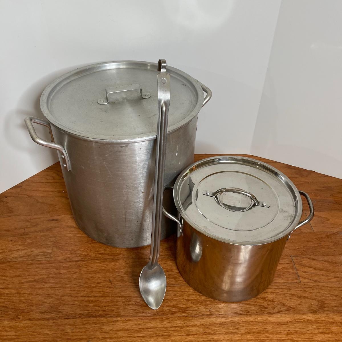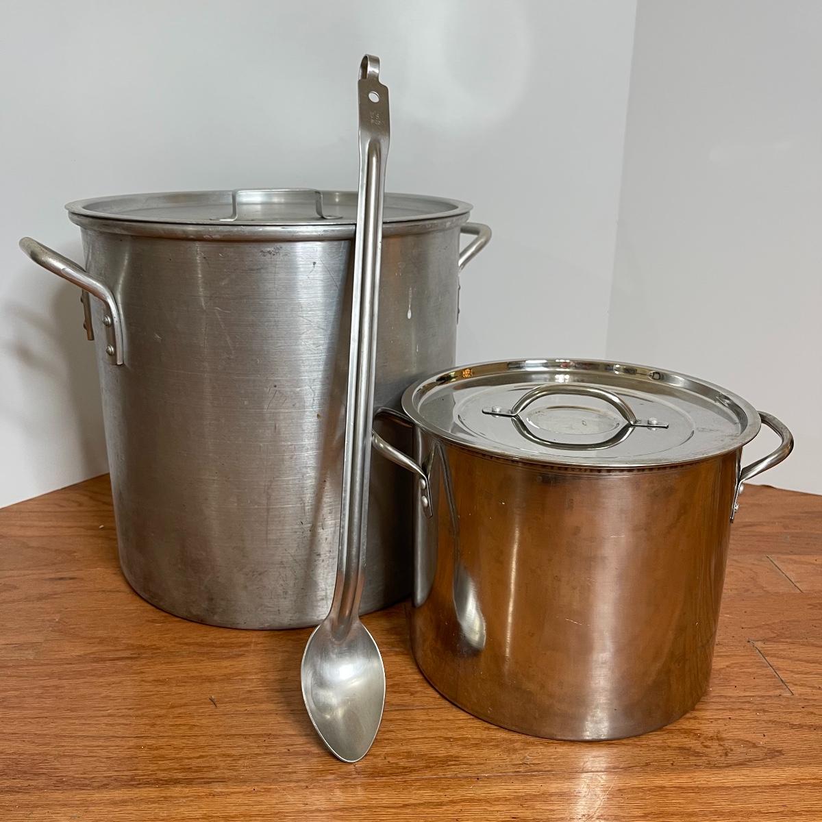 Pair of Large Stock/Boiling Pots with Spoon and Ladle