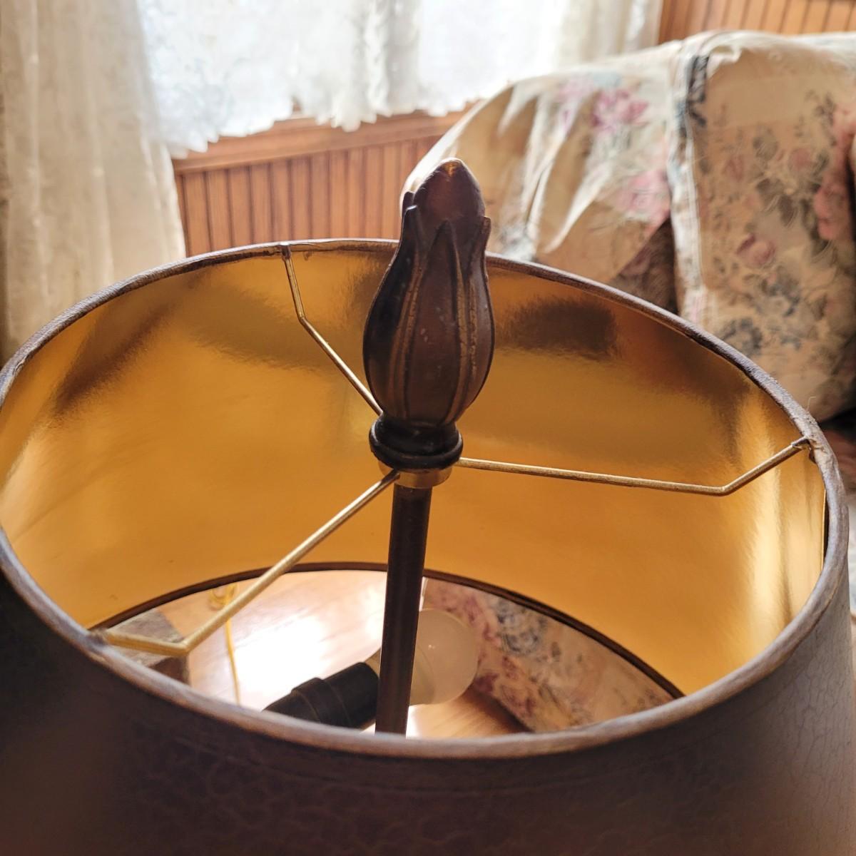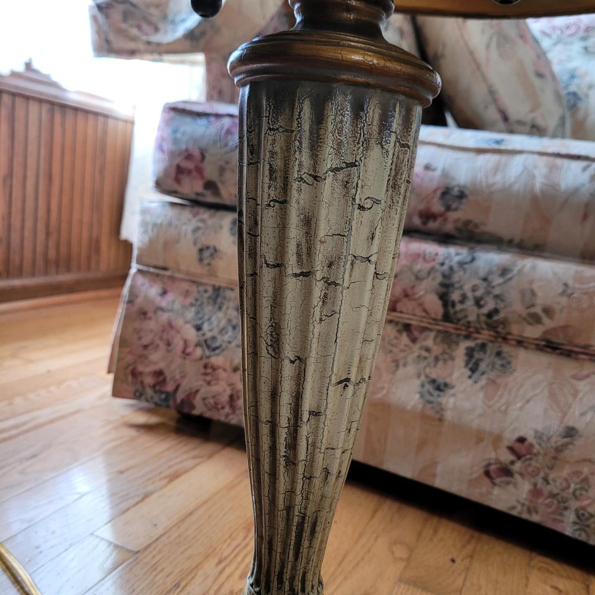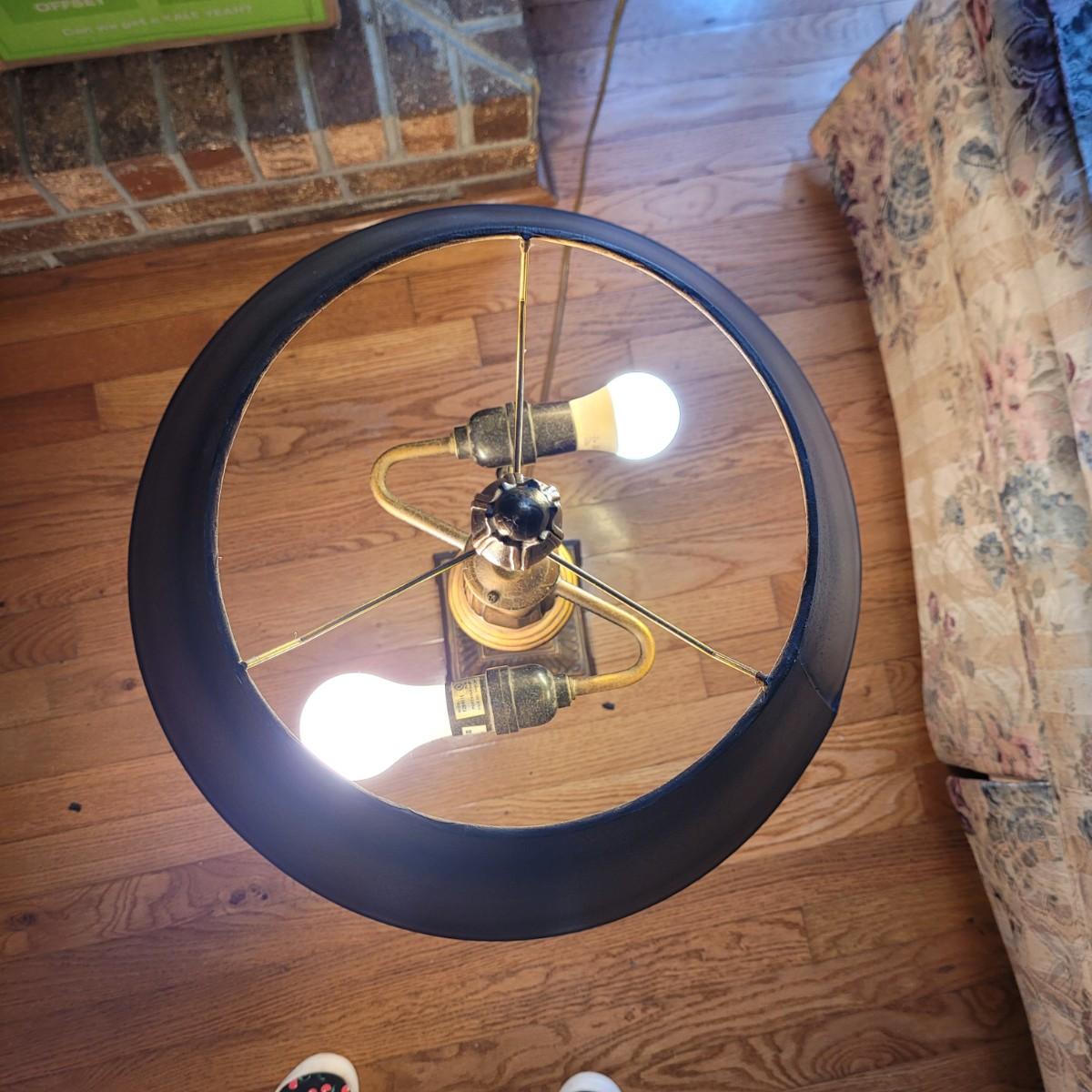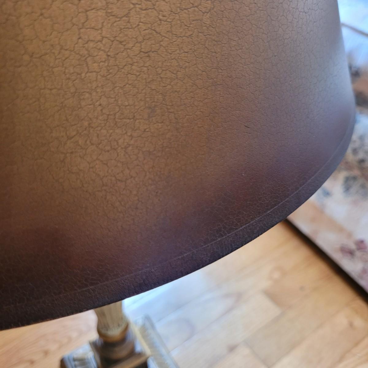 These large table lamps boast an antique Greek style with a bronze and cream color scheme. Lamps powered on when plugged in. Measure approximately 6.5" wide at base x 34"H. Local pickup only.