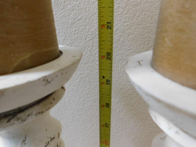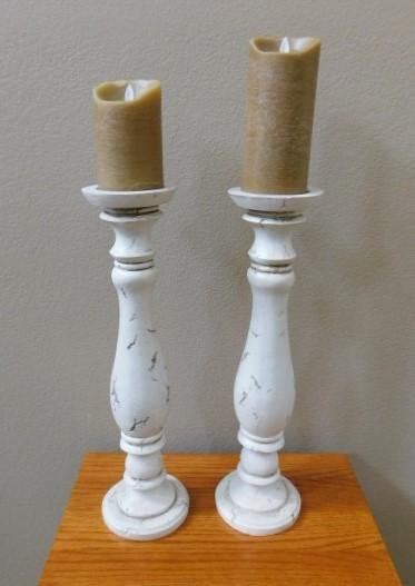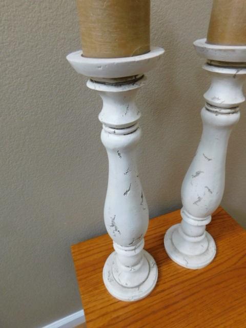 Pair of Large Wood Candle Holders Distressed White 20"