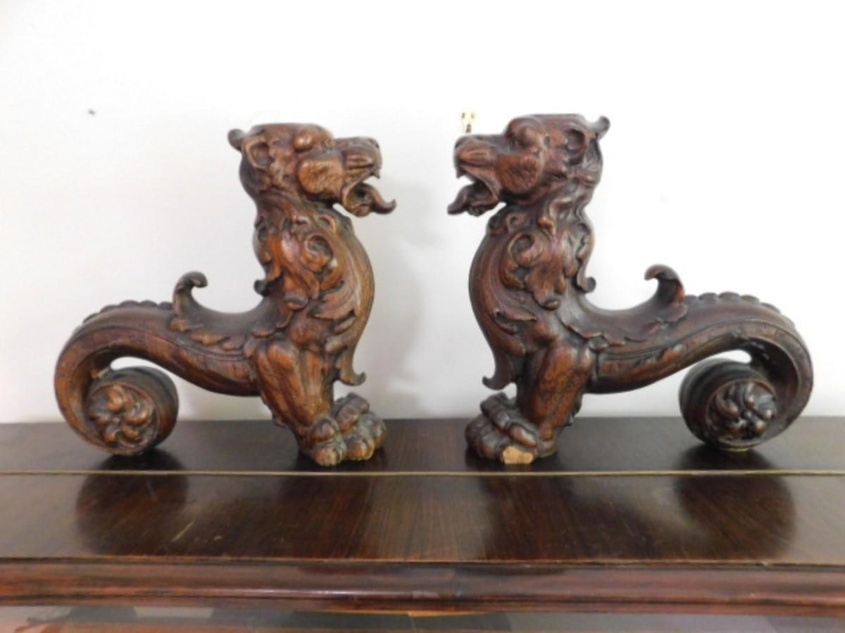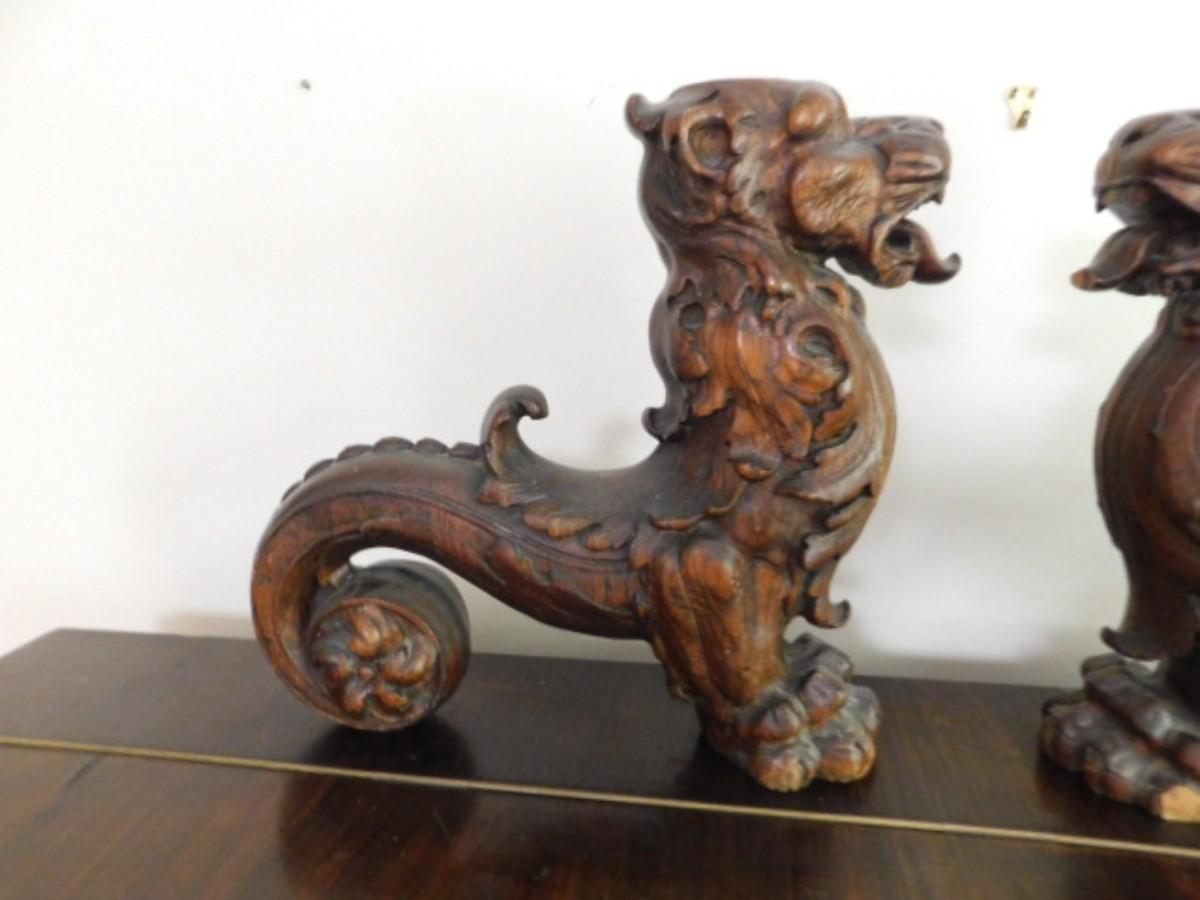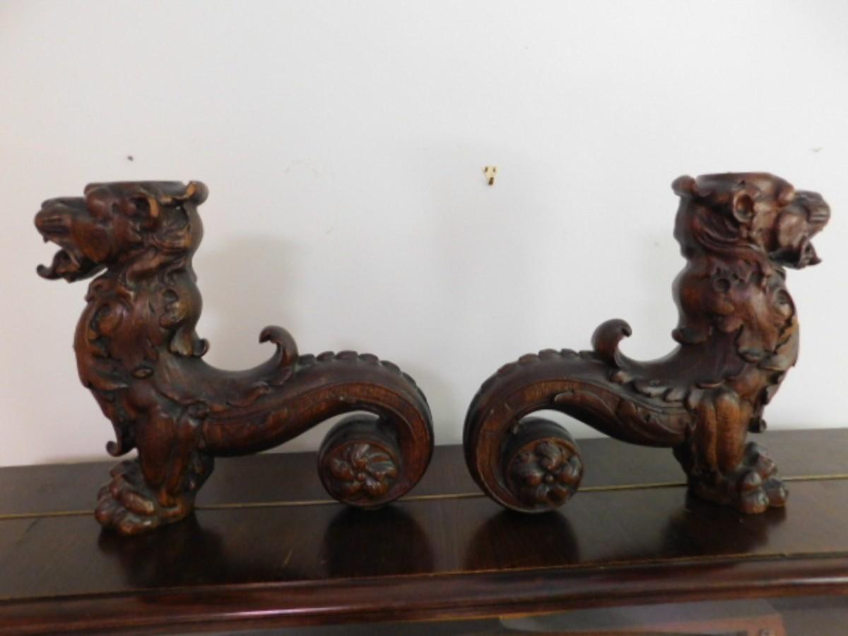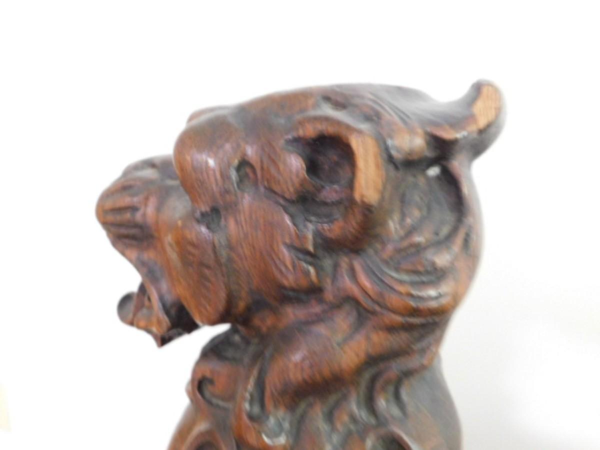 Pair of Large Wood Carved Foo Dogs some minor chipping as shown