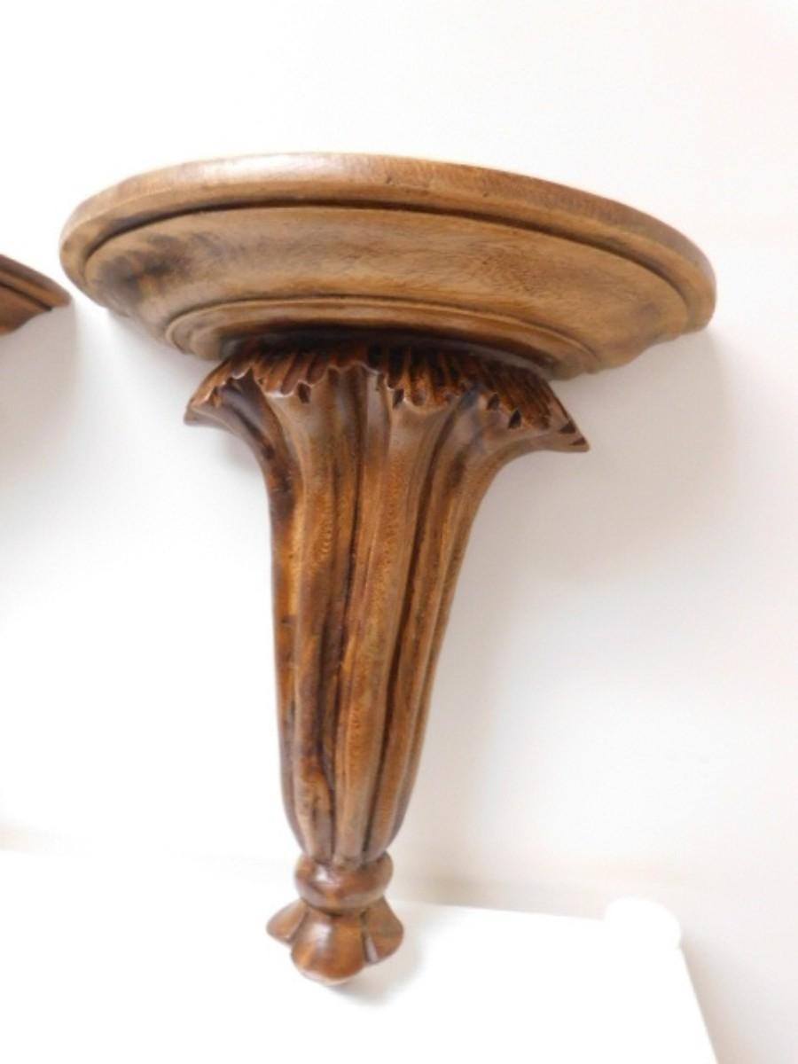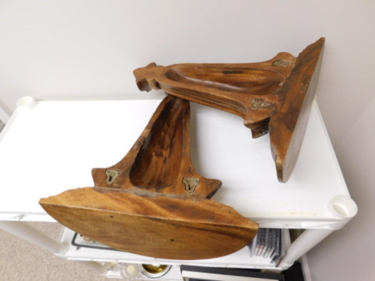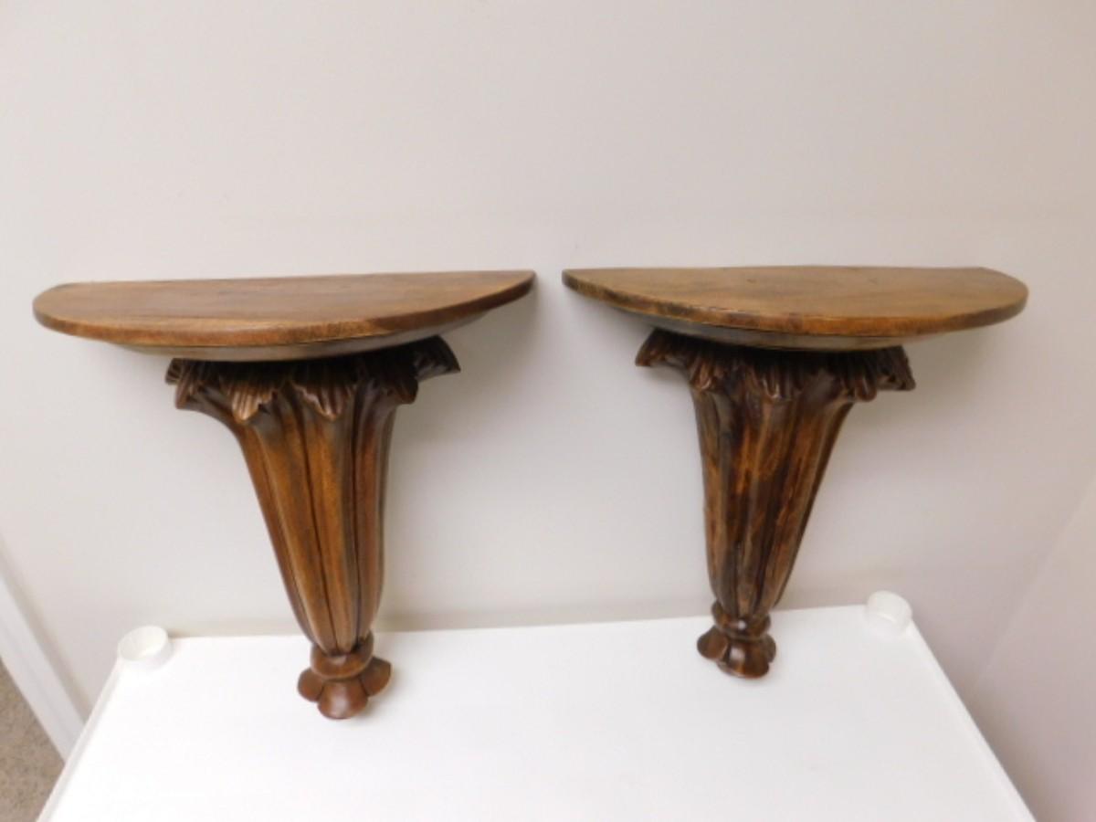 Pair of Large Wood Grain Finish Wall Shelves