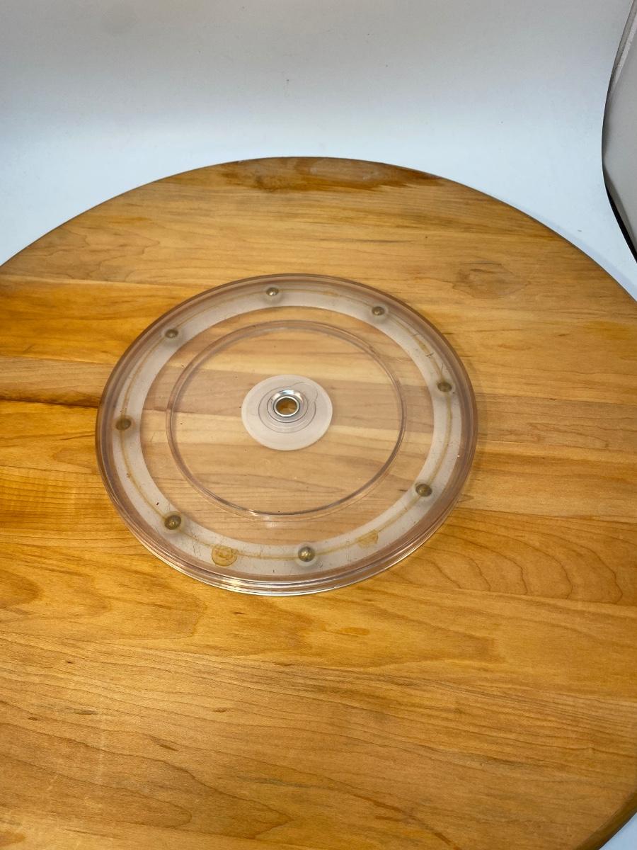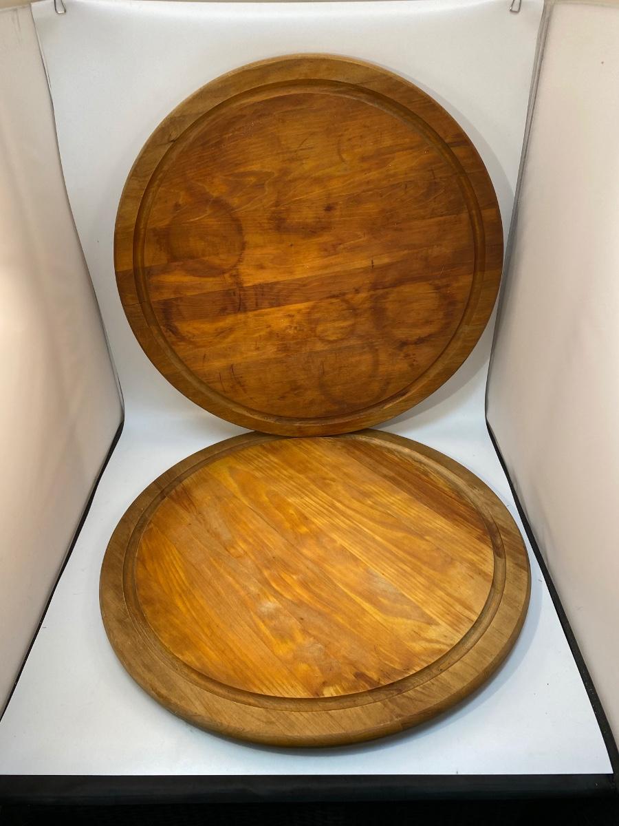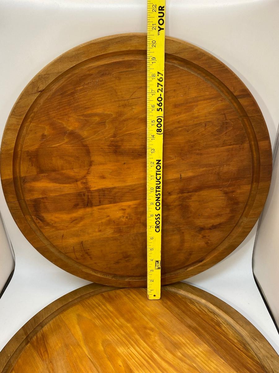 Pair of Large Wood Lazy Susan Rotating Trays. Both are about 20" size. Signs of use, one is a little warped from age, both are in useable condition.