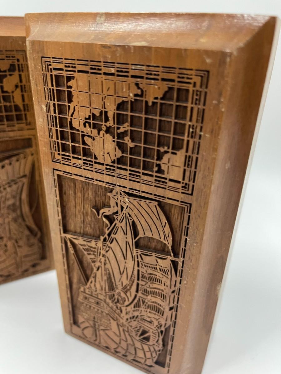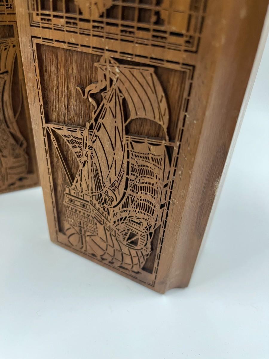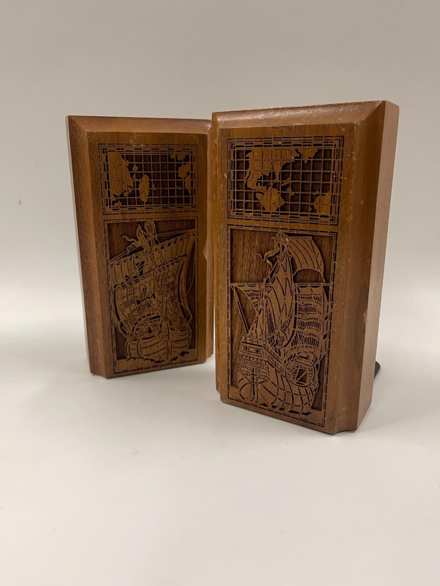 Pair of Lasercraft Nautical Wood Bookends