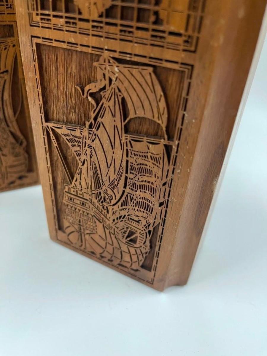 Pair of Lasercraft Nautical Wood Bookends