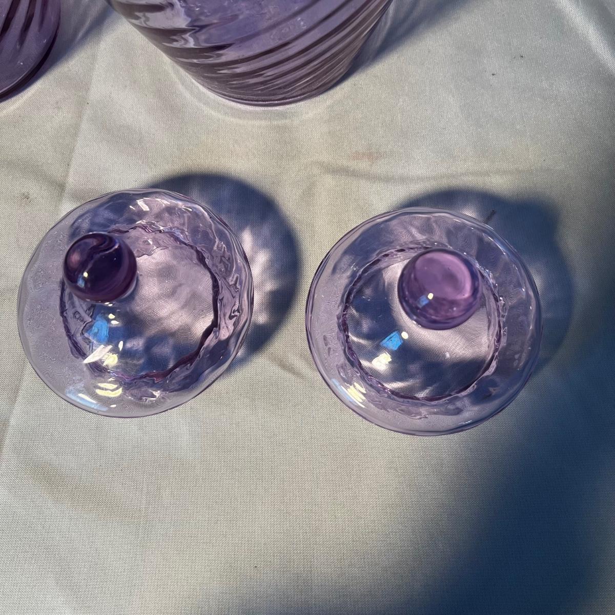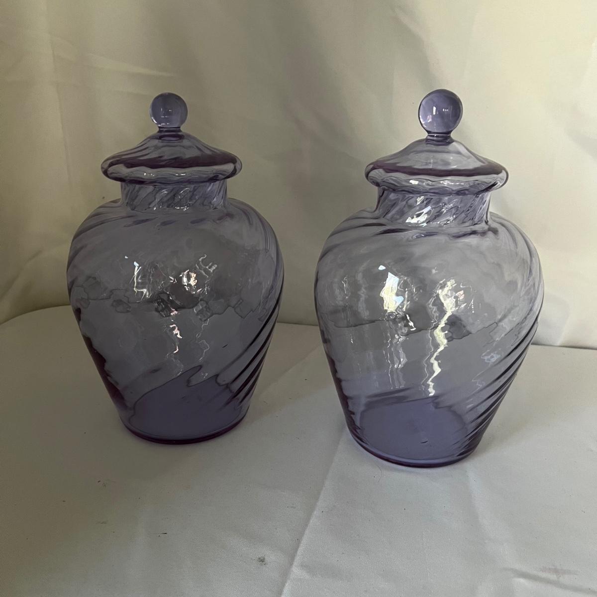 Pair of Lavender Purple Lidded Glass Jars (LR-RG)
