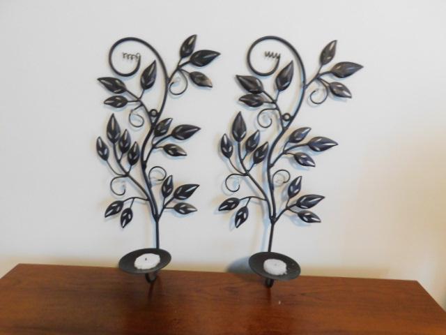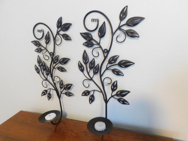 Pair of Leaf and Branch Metal Candlelight Wall Sconces