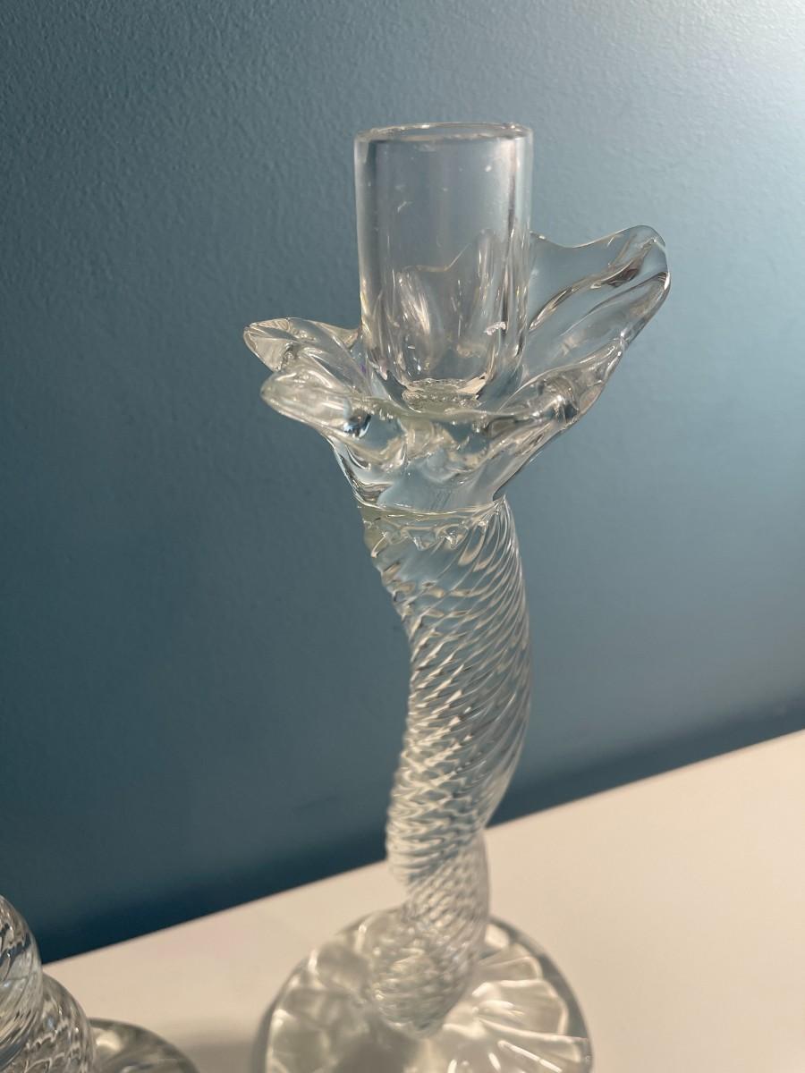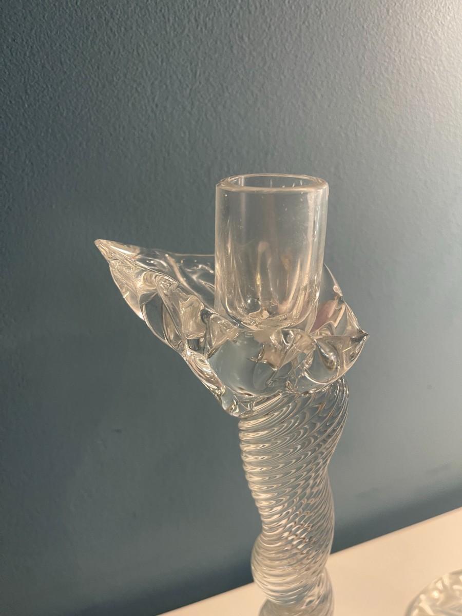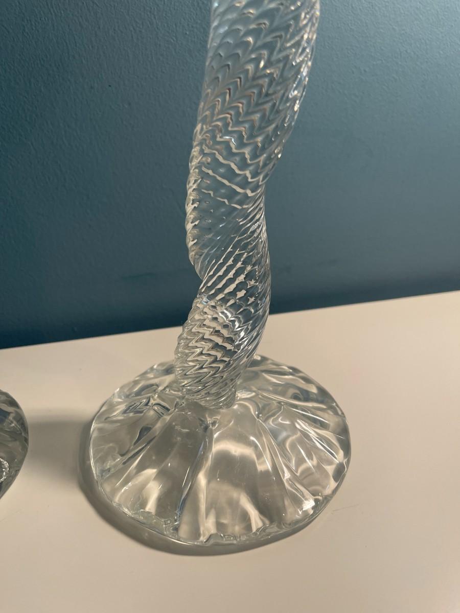 Pair of Leon Applebaum Signed Art Glass Whymsical Tornado Candlesticks