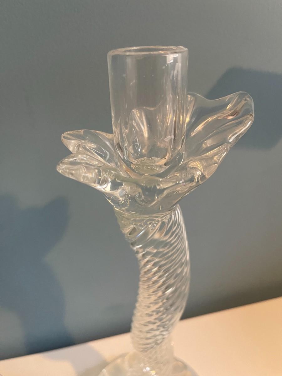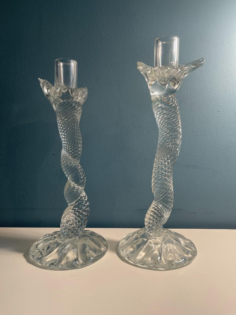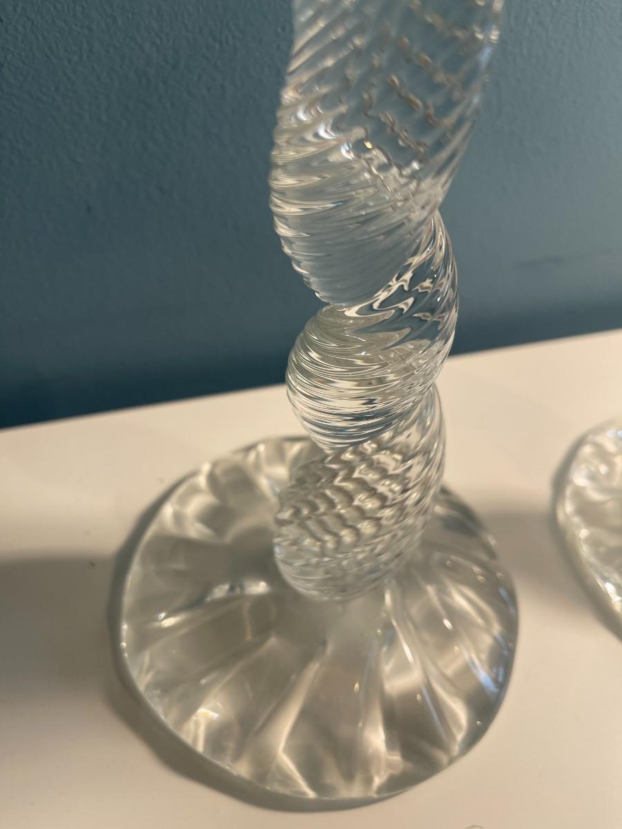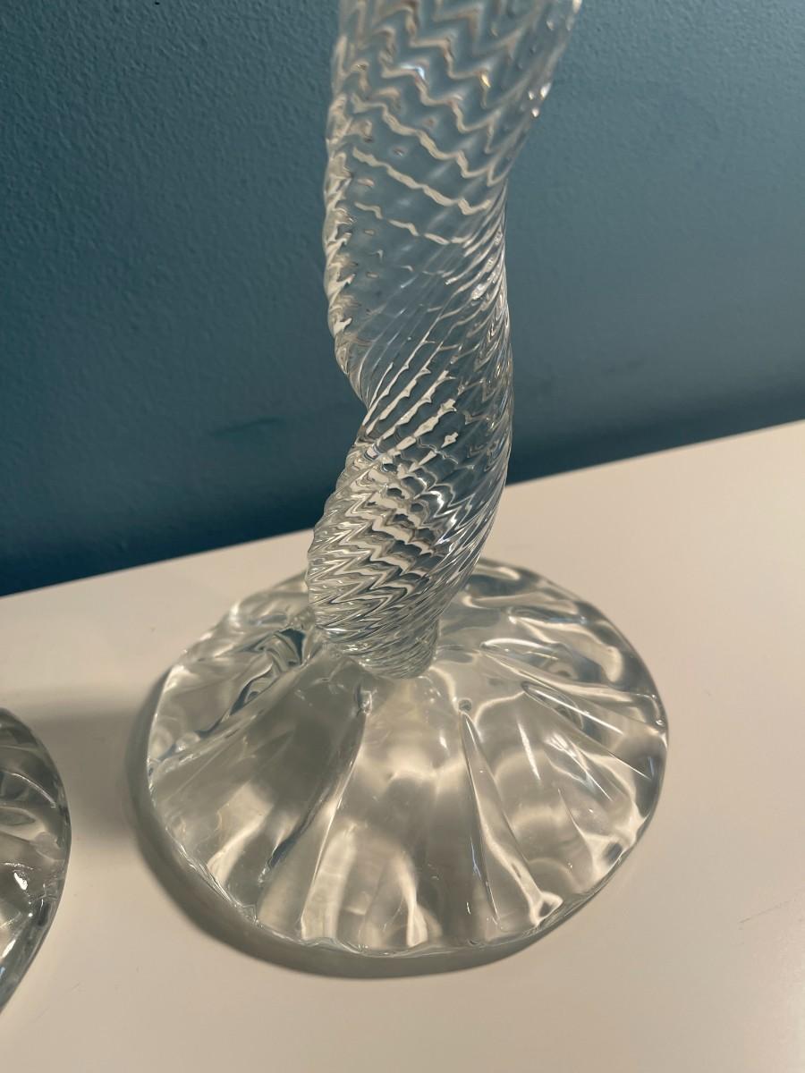 Pair of Leon Applebaum Signed Art Glass Whymsical Tornado Candlesticks