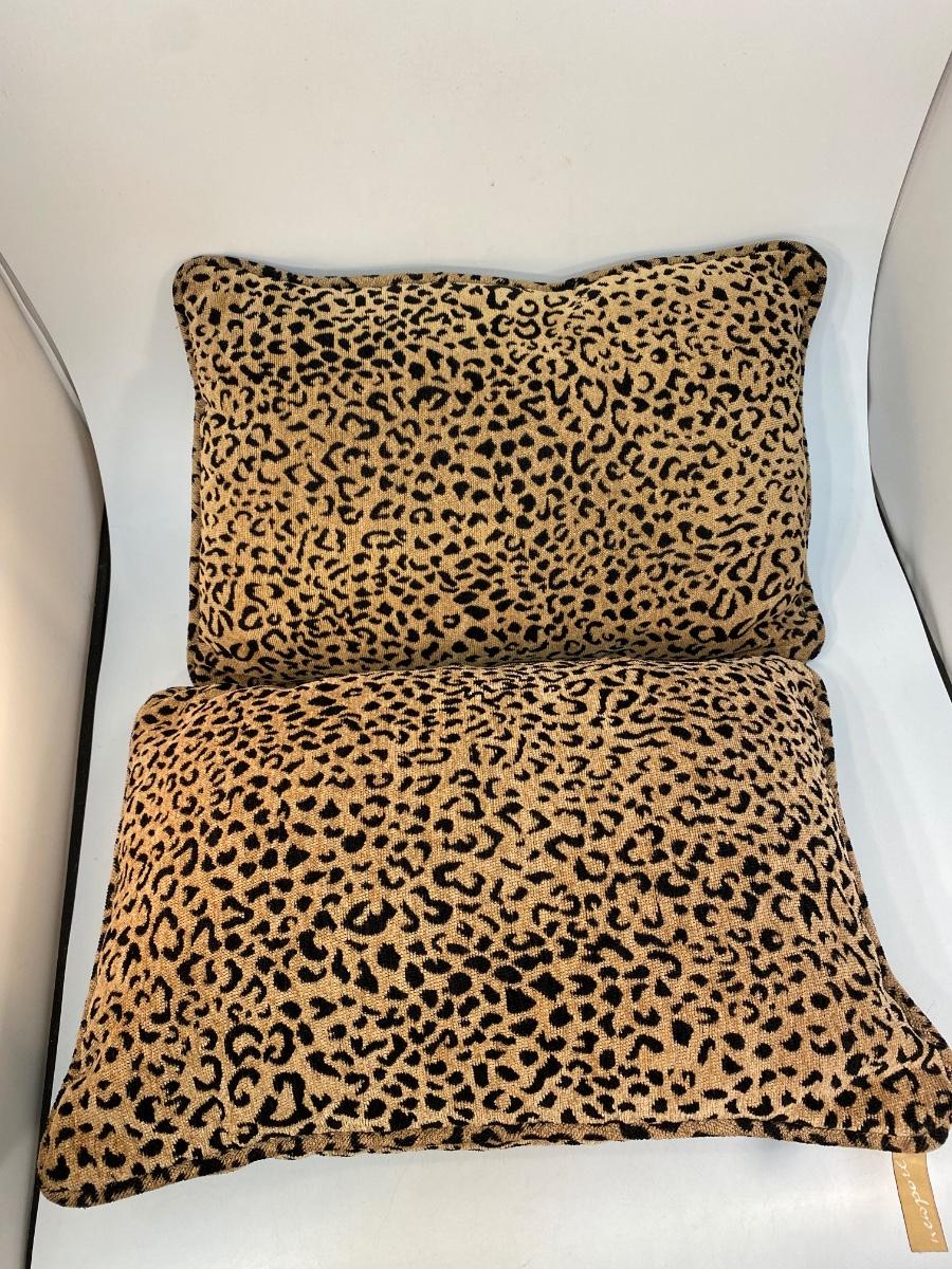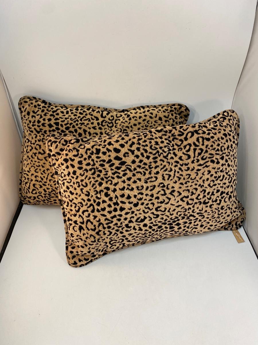 Pair of Leopard Print Spotted Throw Accent Pillows. Good condition. About 12”x18” size.