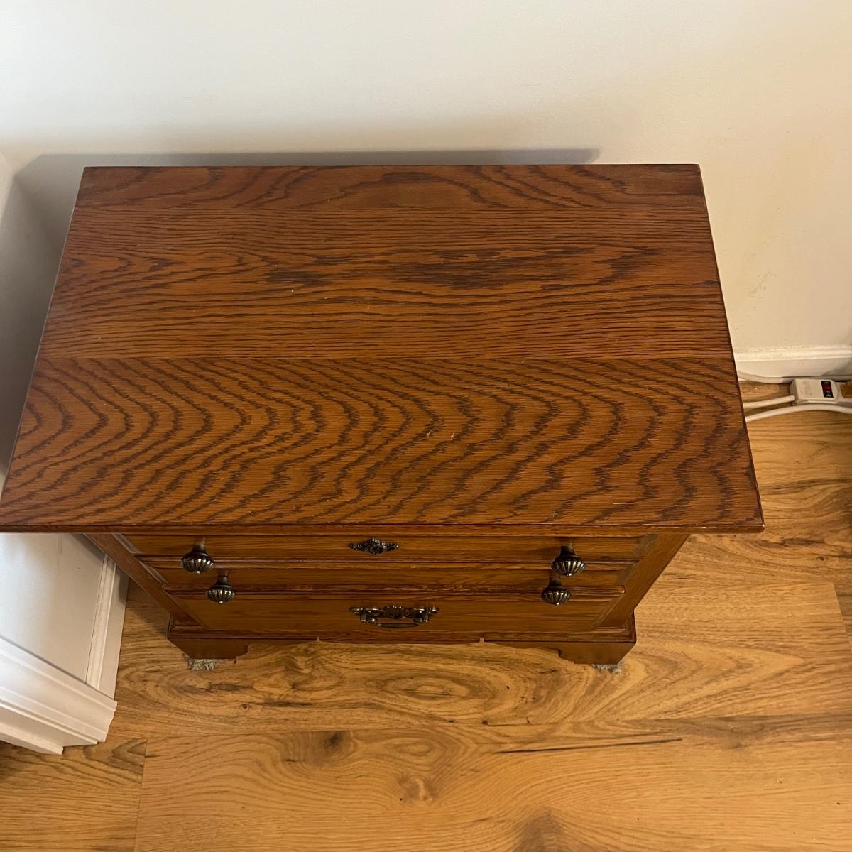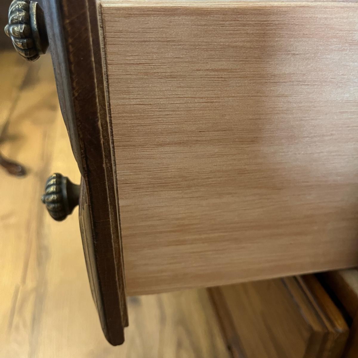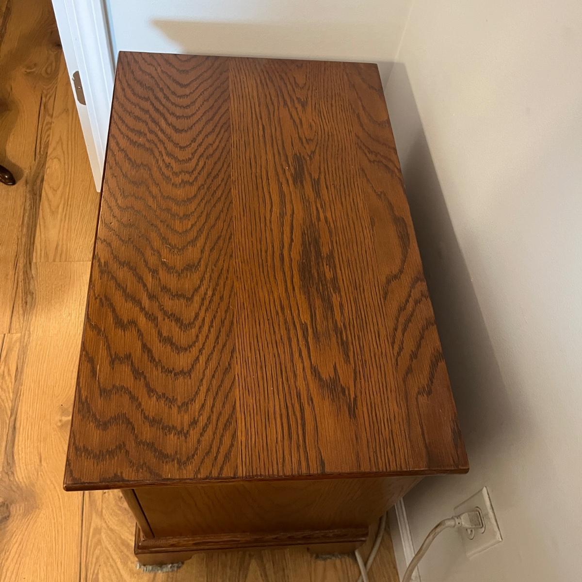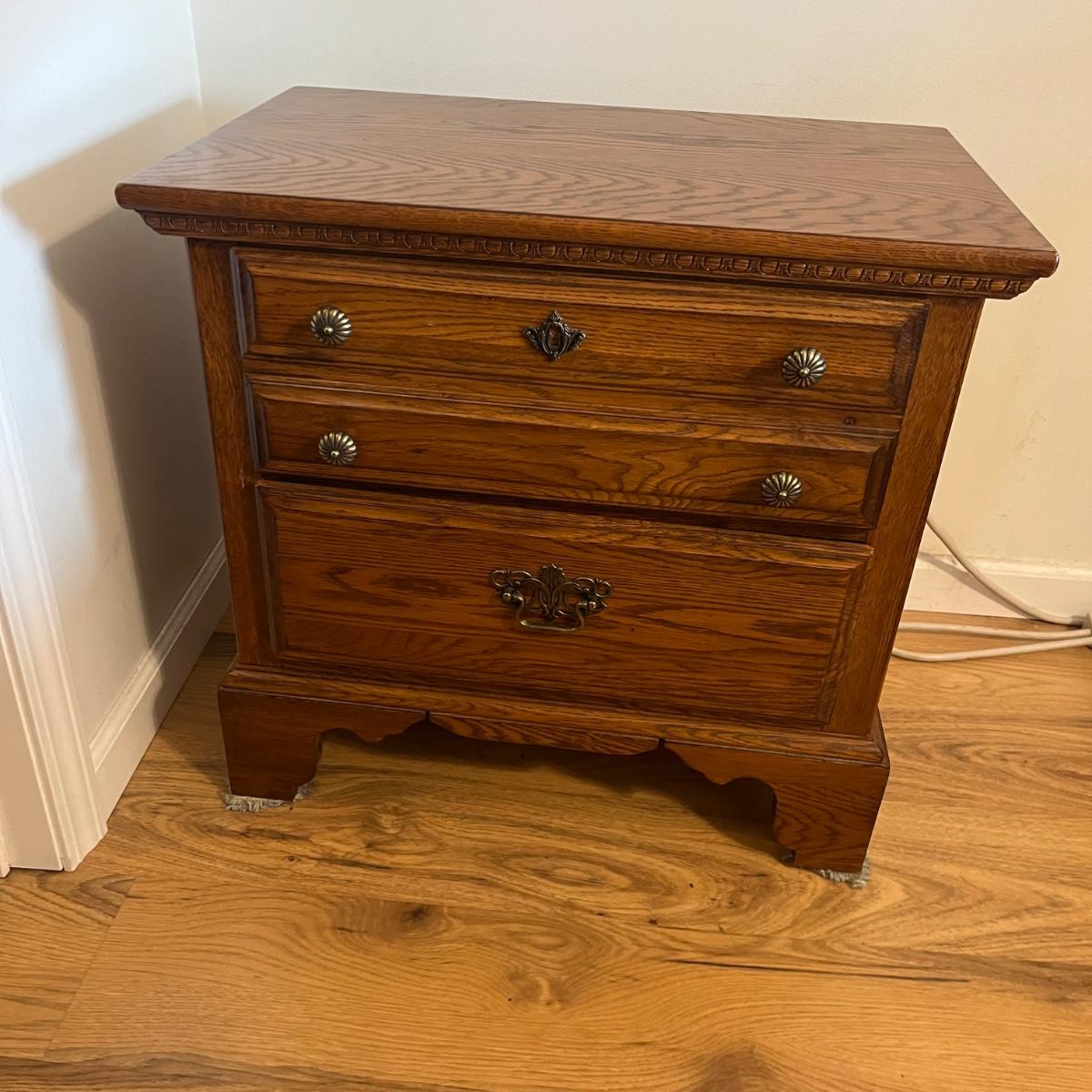 Lot includes two Lexington side tables with two drawers on each piece. Side tables measure 16” x 26” x 24.75”H. One side tabletop has a faint water circle and a few nicks and scratches, see pictures. Matching bedroom suite furniture is available in other lots in this sale.