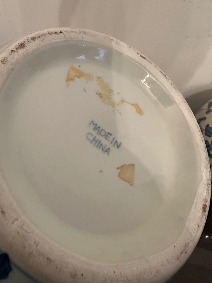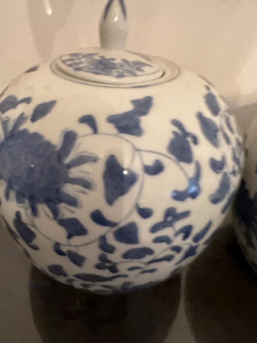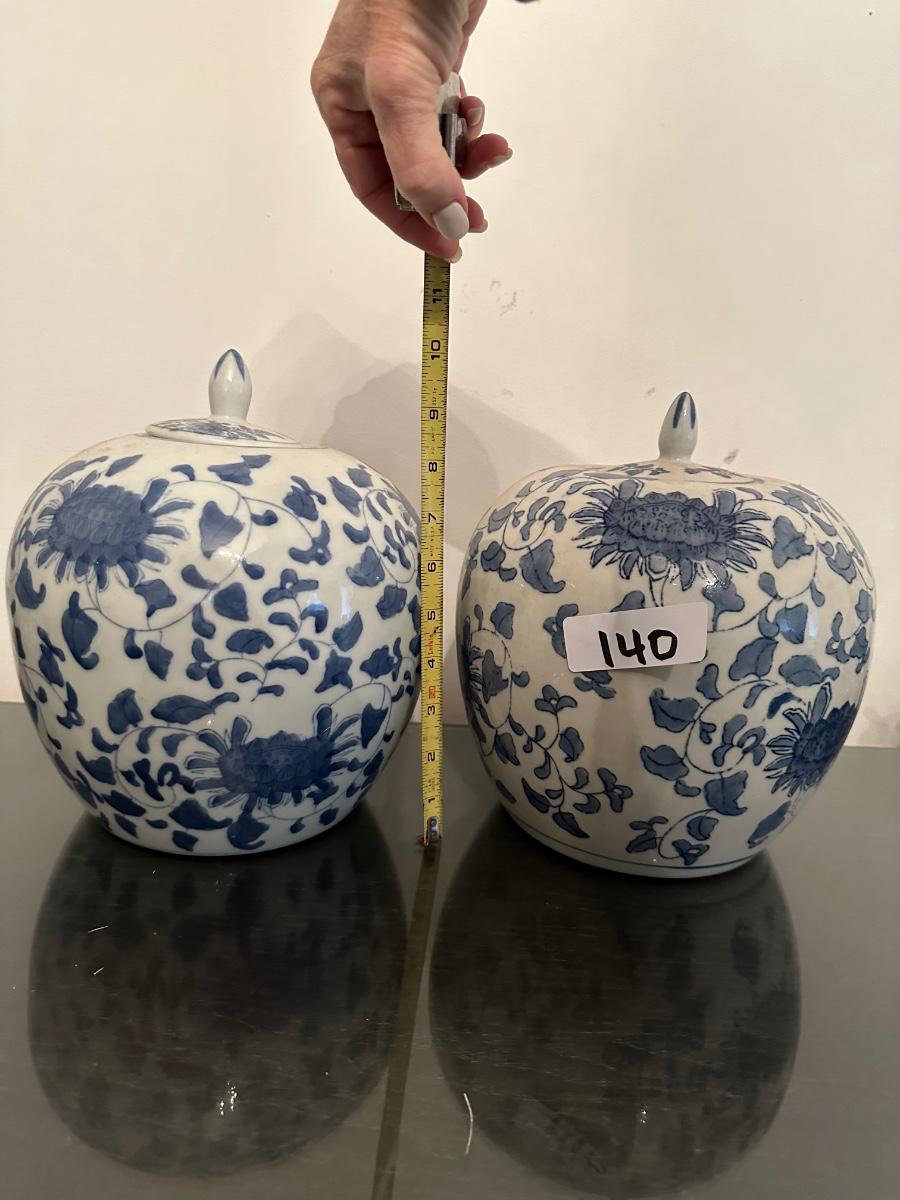 PAIR OF BLUE & WHITE LIDDED GINGER JARS AS PICTURES