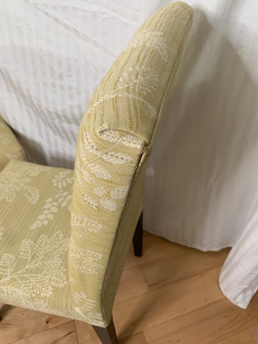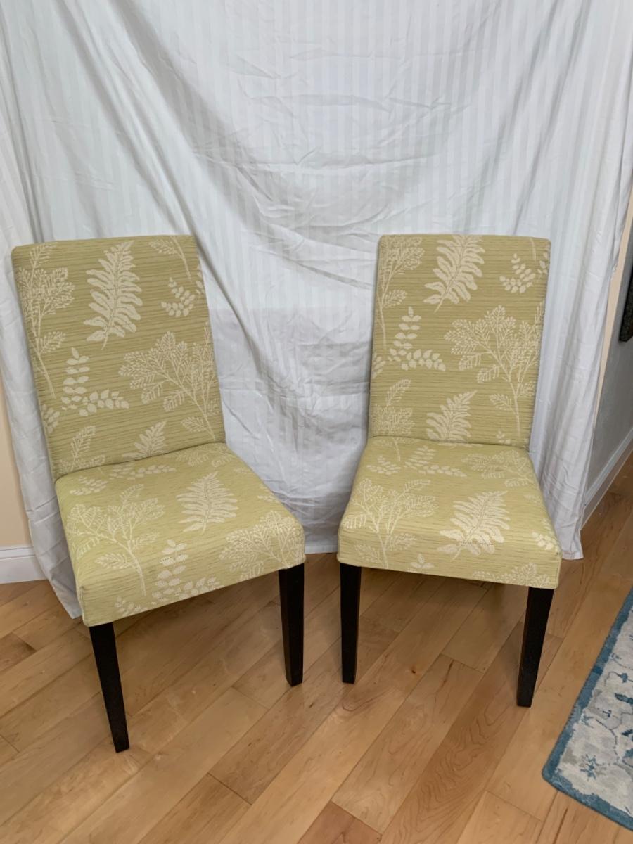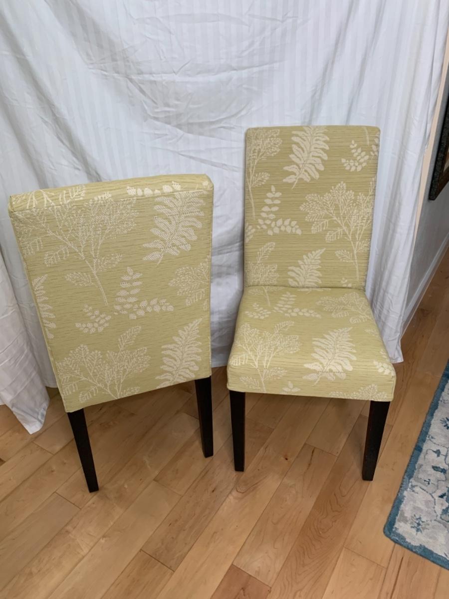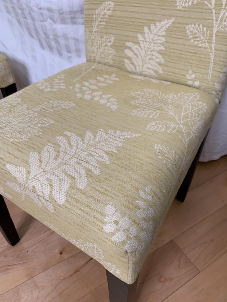 2 Chairs very light green upholstered chairs with white fern and foliage