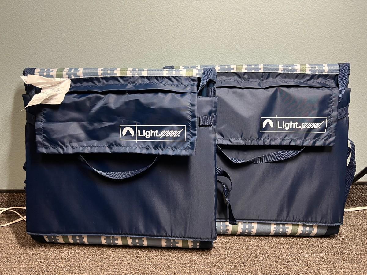 Pair of Lightspeed Foldable Portable Stadium Seat Cushions. Good condition. Great for camping, the beach, park, sports events and more.