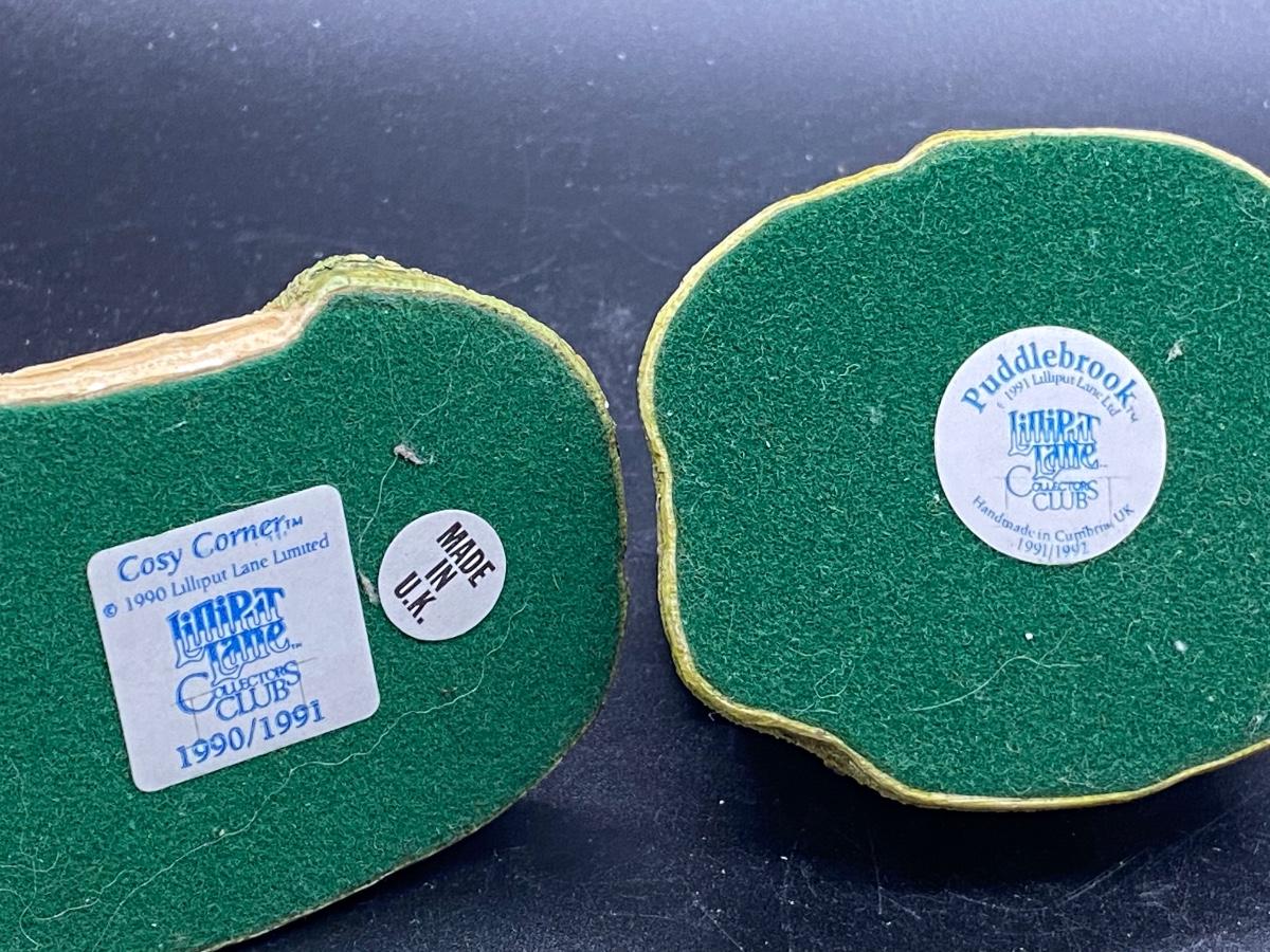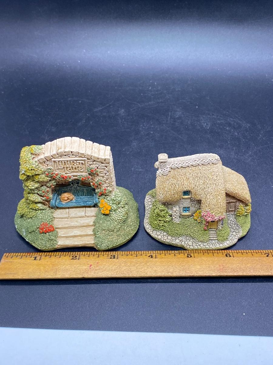 Pair of Lilliput Lane miniature cottages figurines. From the early 1990s. In good condition, about 3" to 4" size.