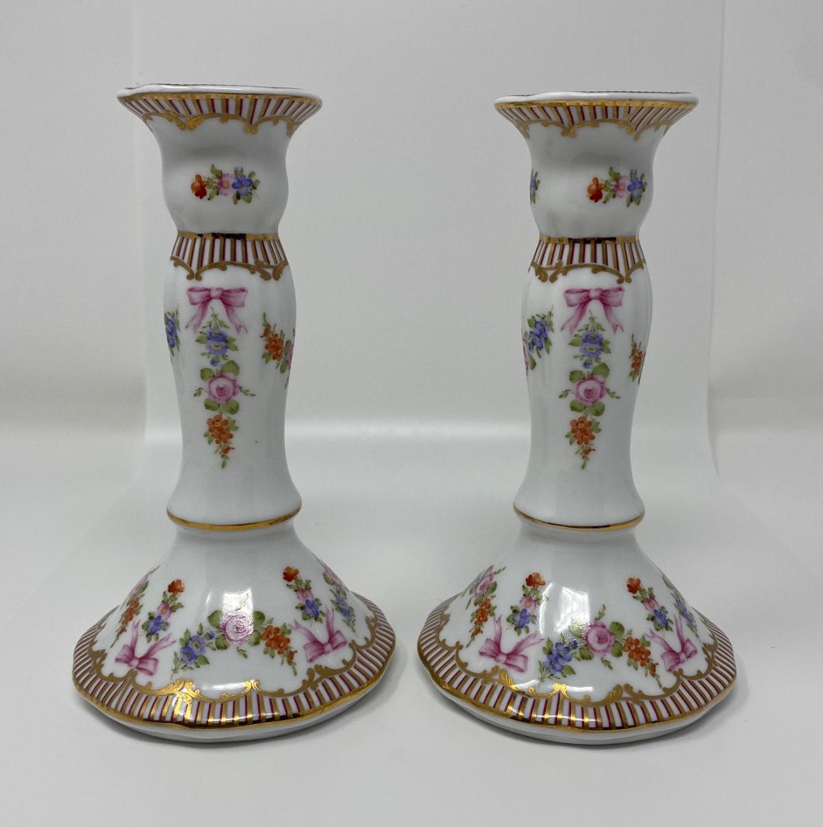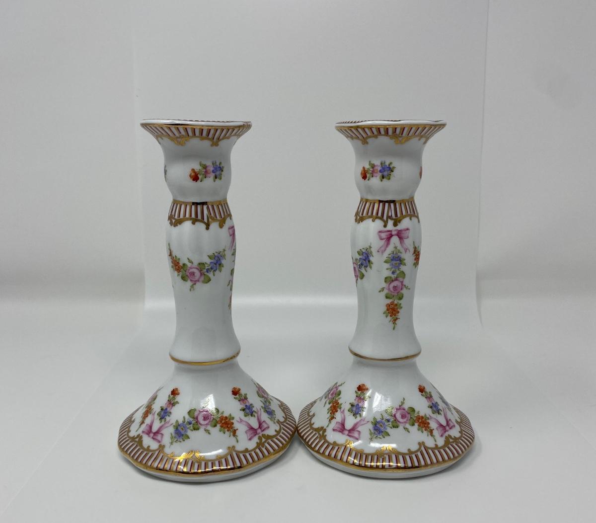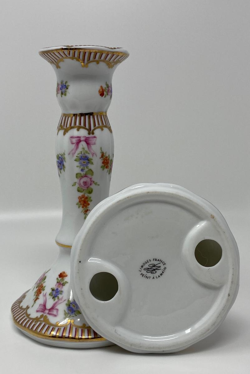 Pair of Limoges France Candle Holders. Marked On Bottom - 7" T