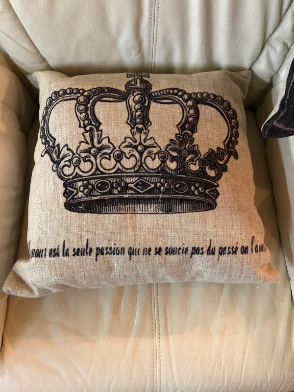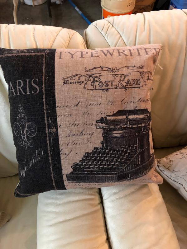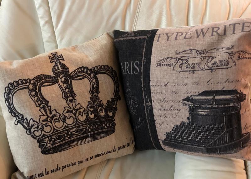 Pair of Linen Throw Pillows 16" Crown Typewriter