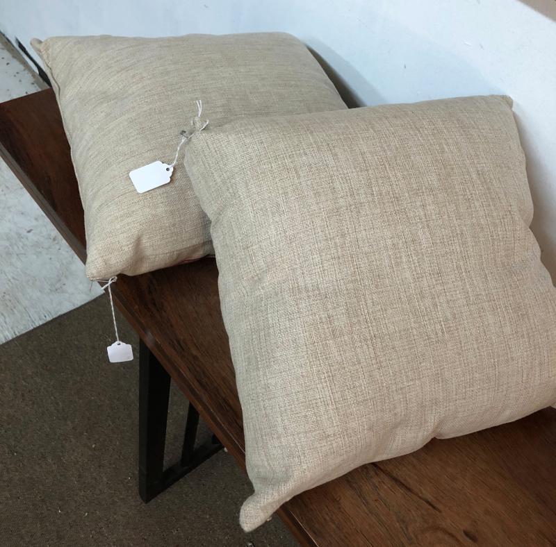 Pair of new linen pillows. 15"x15". If you need shipping please be aware that the cost of shipping may be more than what the item cost. All items ship from zip code 84109, you can go to USPS.com for estimates of cost.