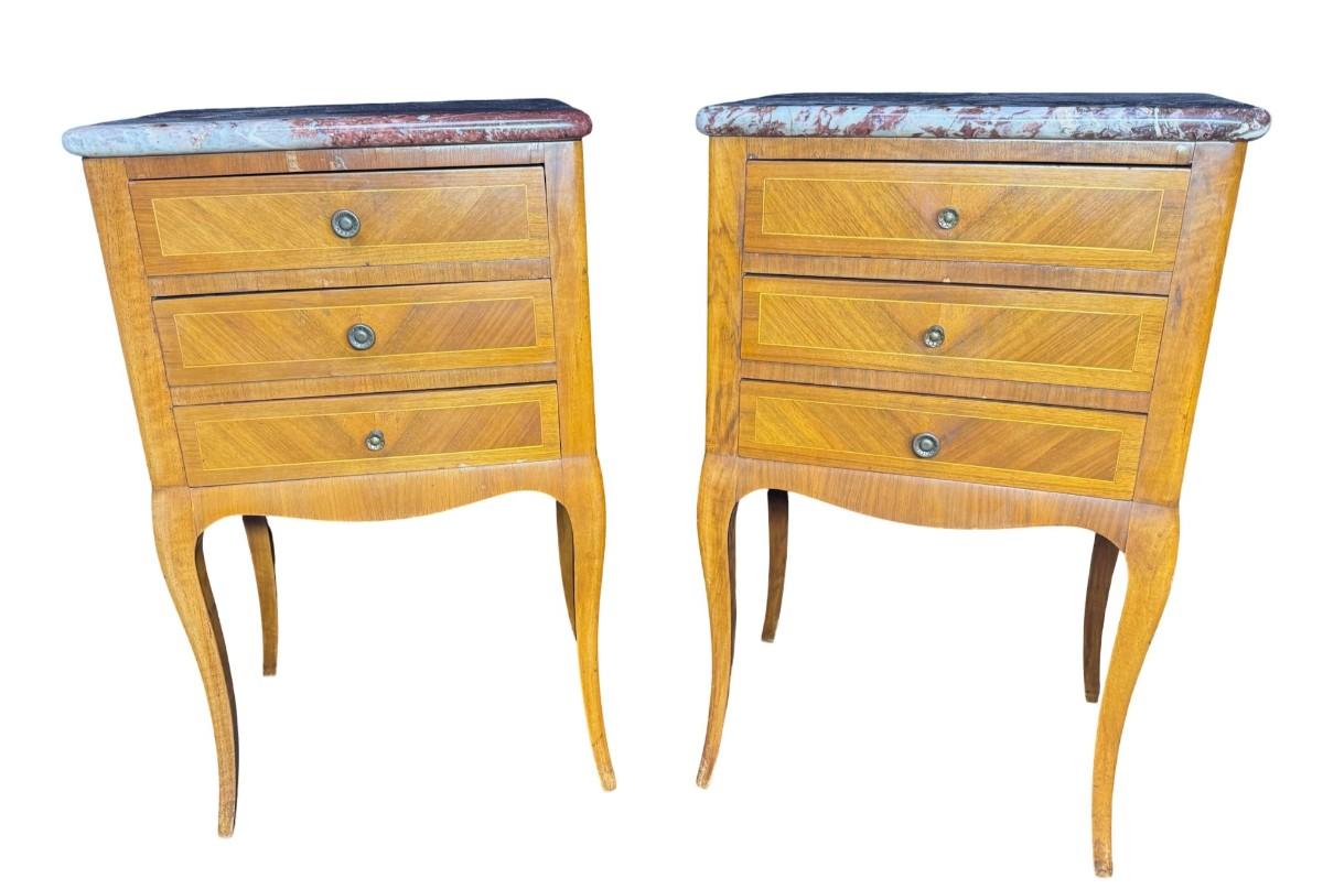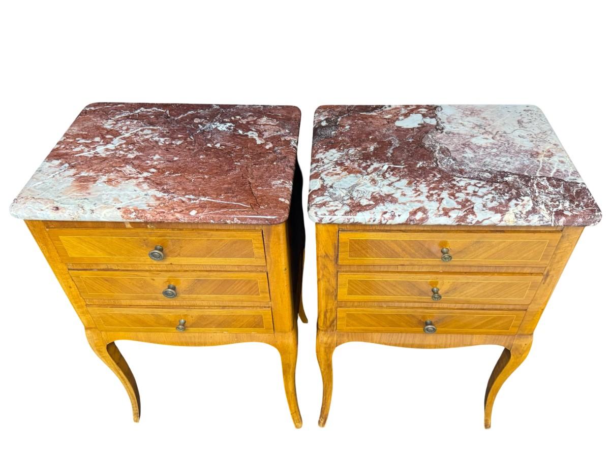 Pair of Louis XV Style Marble Top Bedside Tables