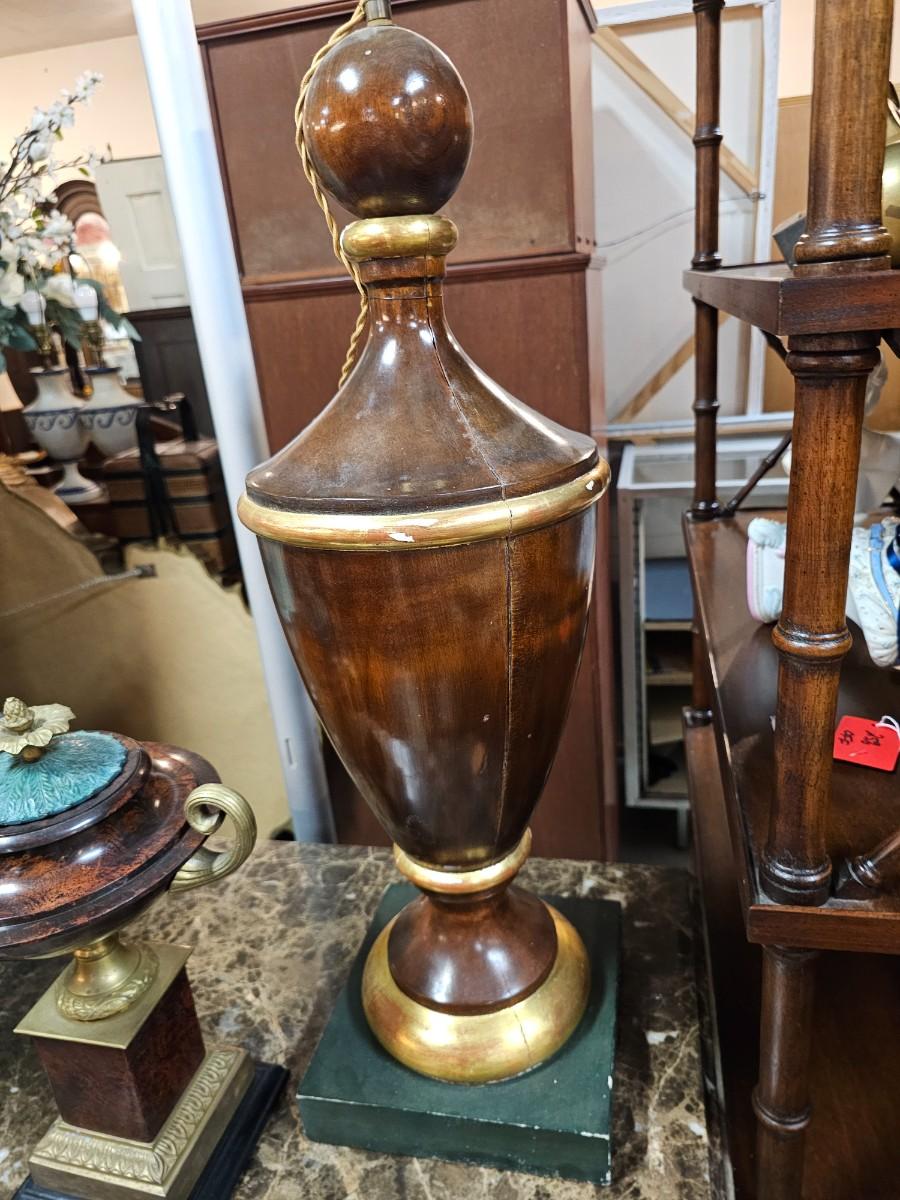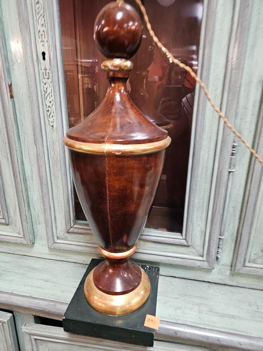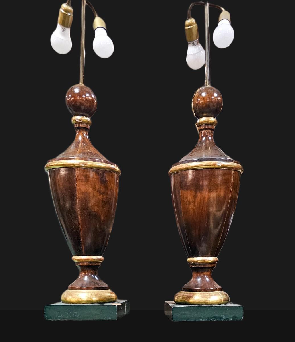 Mahogany and gilt wood urn form lamps. London, contemporary. This item is only the two lamps without shades.