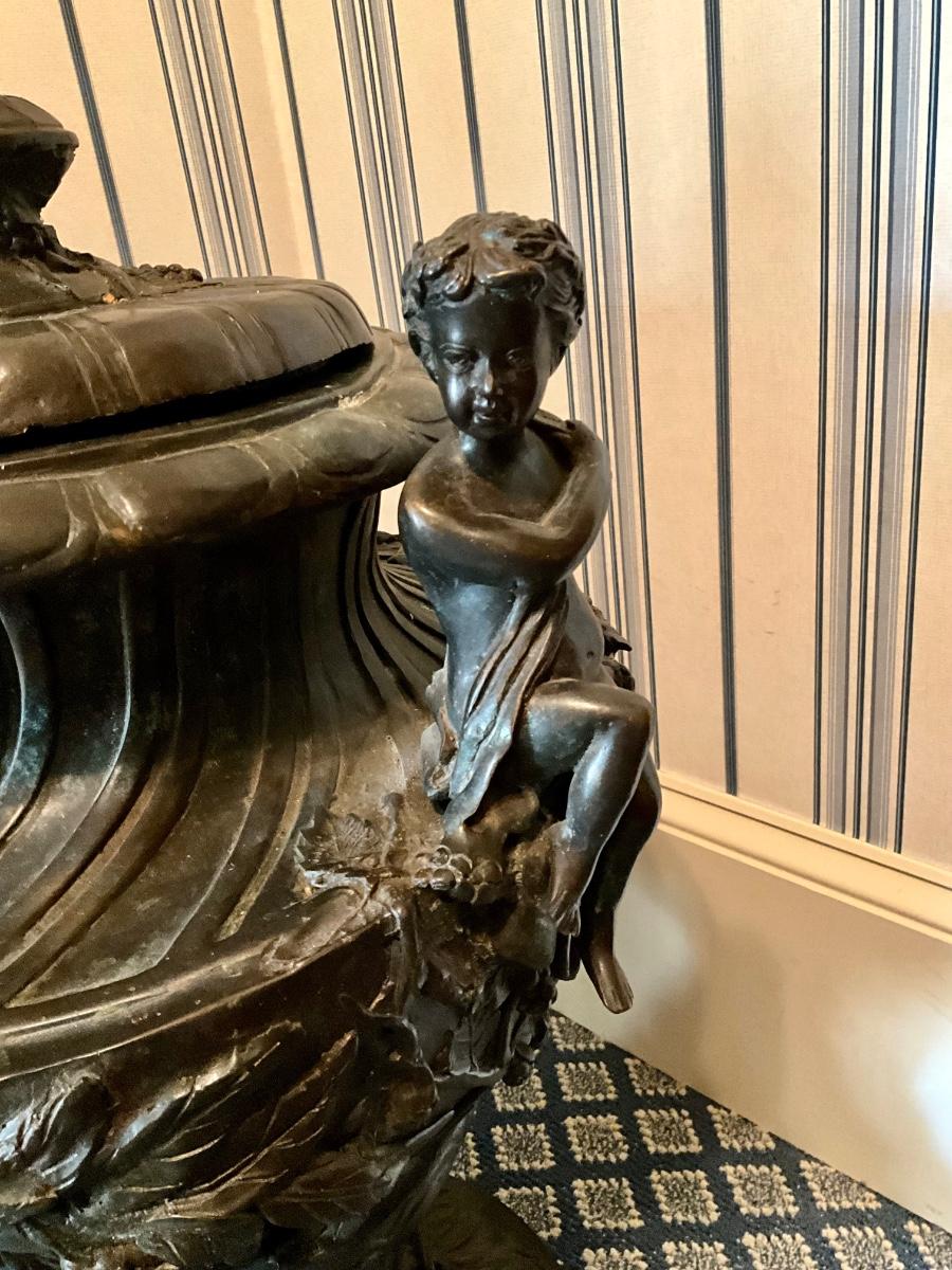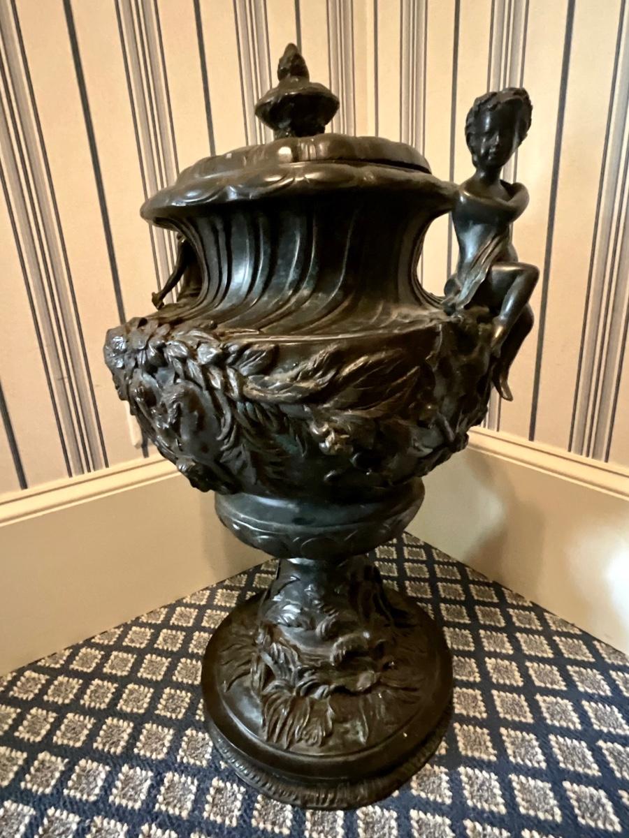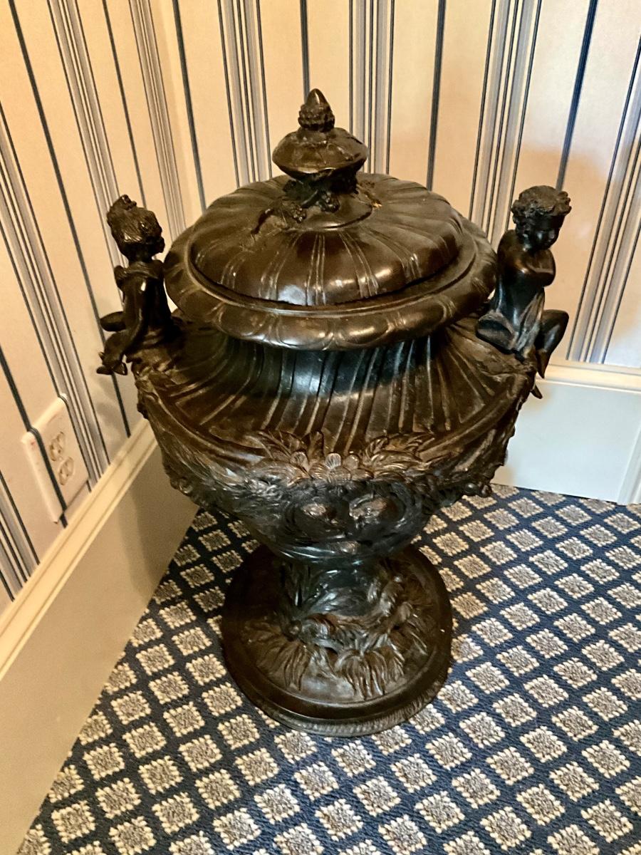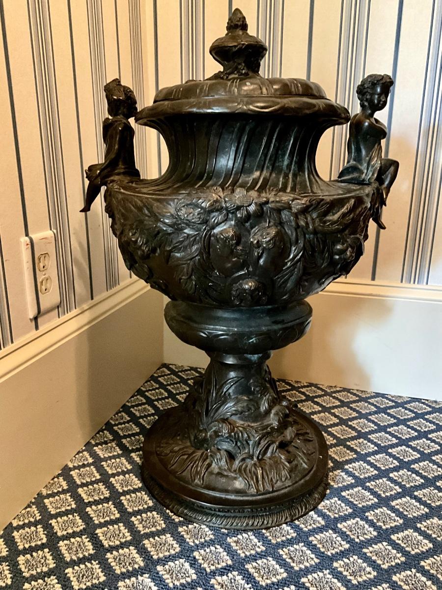 Maitland Smith solid bronze lidded urn. 30 inches tall 22 inches wide