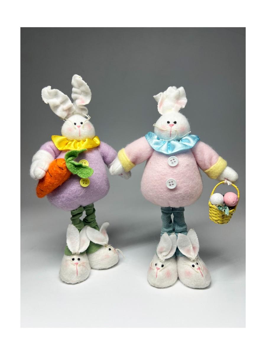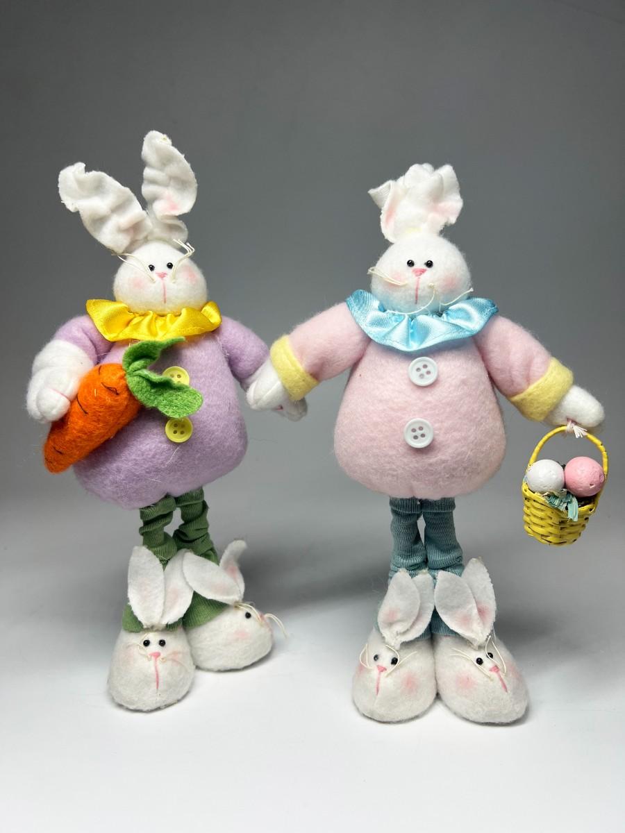 Pair of Malleable Felt Easter Bunny Holiday Decor Standing Figurines