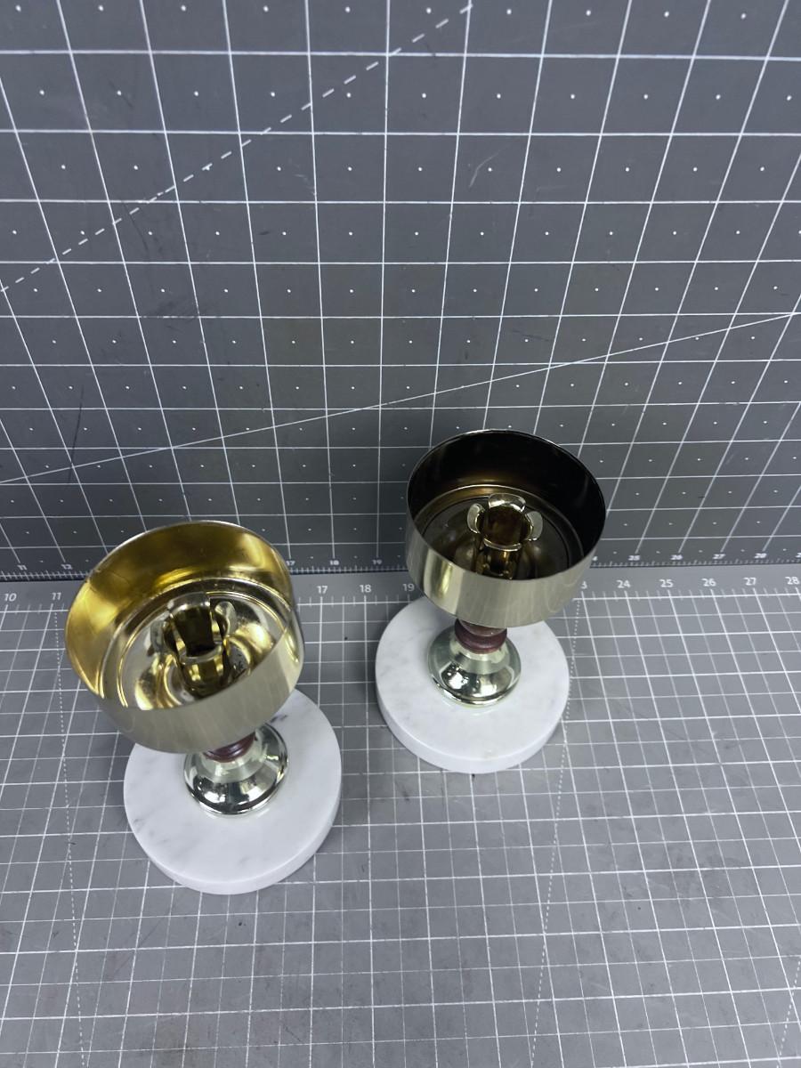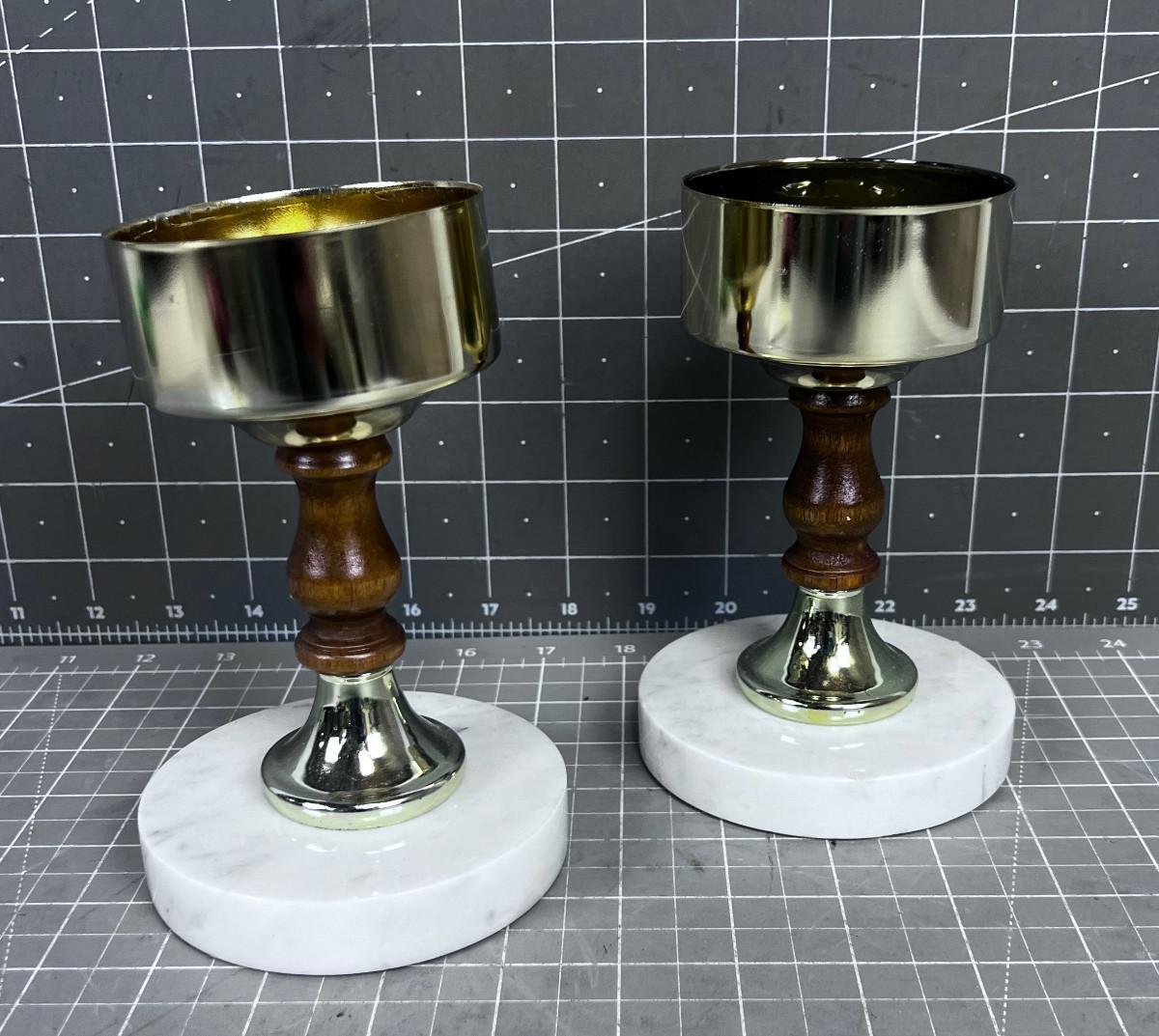 Pair of Marble Based Candle Holder in Gold Tone with Wood