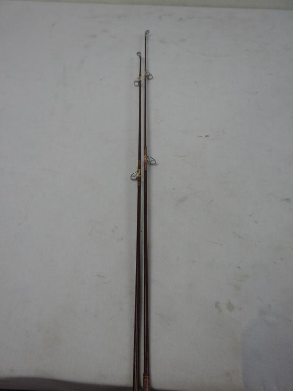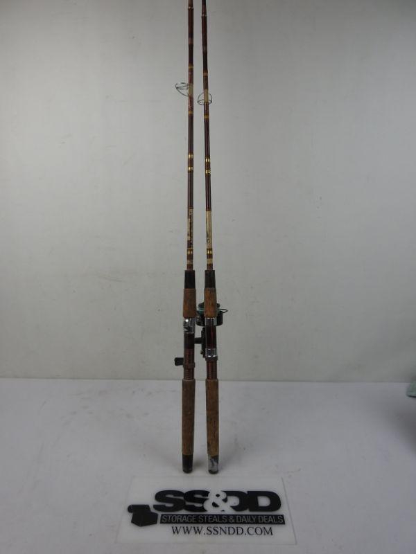 Pair of Maroon/Brown Fishing Poles: 83" with Reel and 85" without Reel