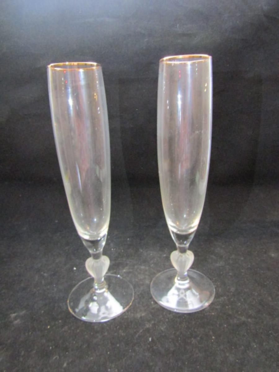 Pair of Marquis by Waterford Crystal Glasses- Gold Rimmed (#105)