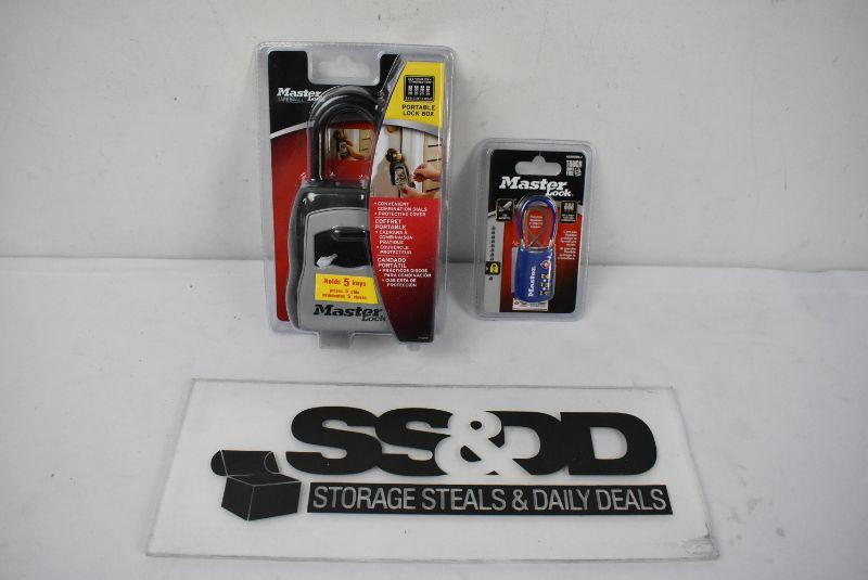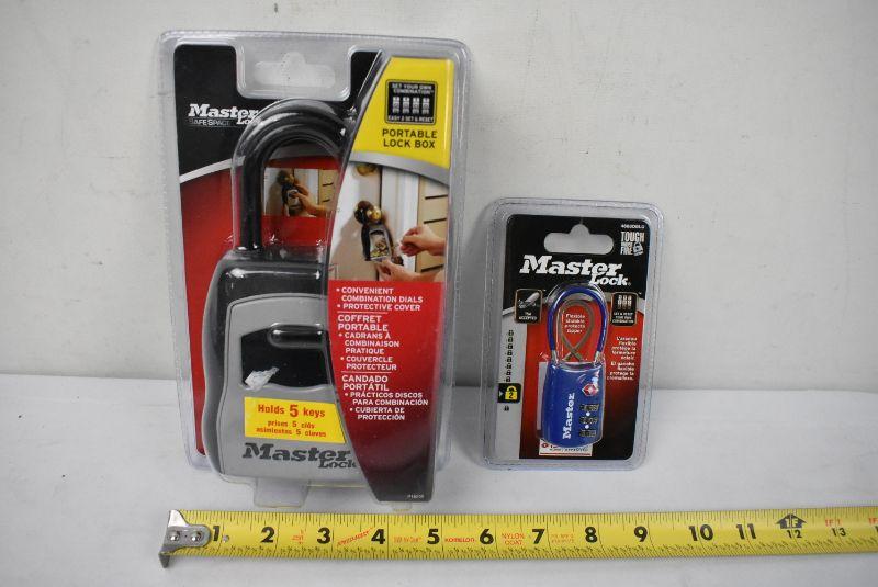 Pair of Master Locks: Portable Lock Box & Flexible Shackle Luggage Lock - New