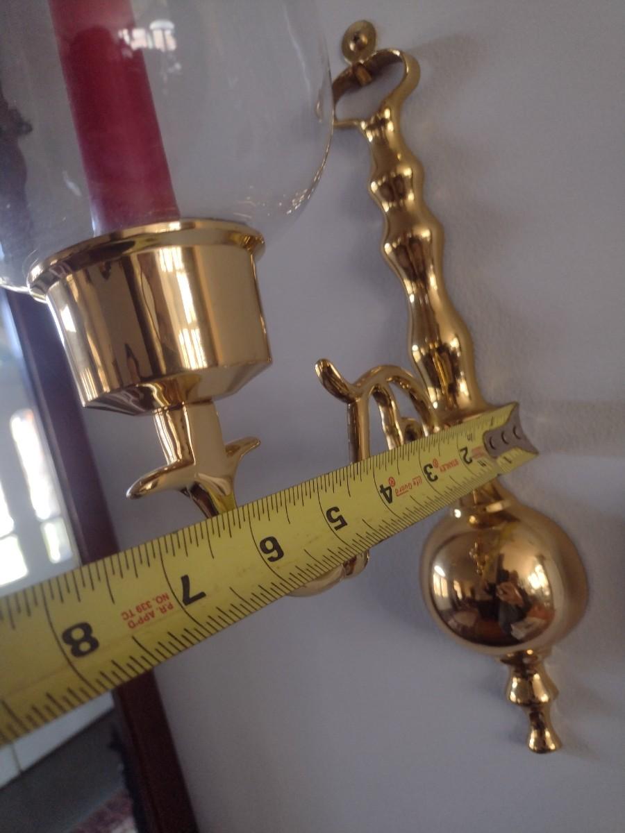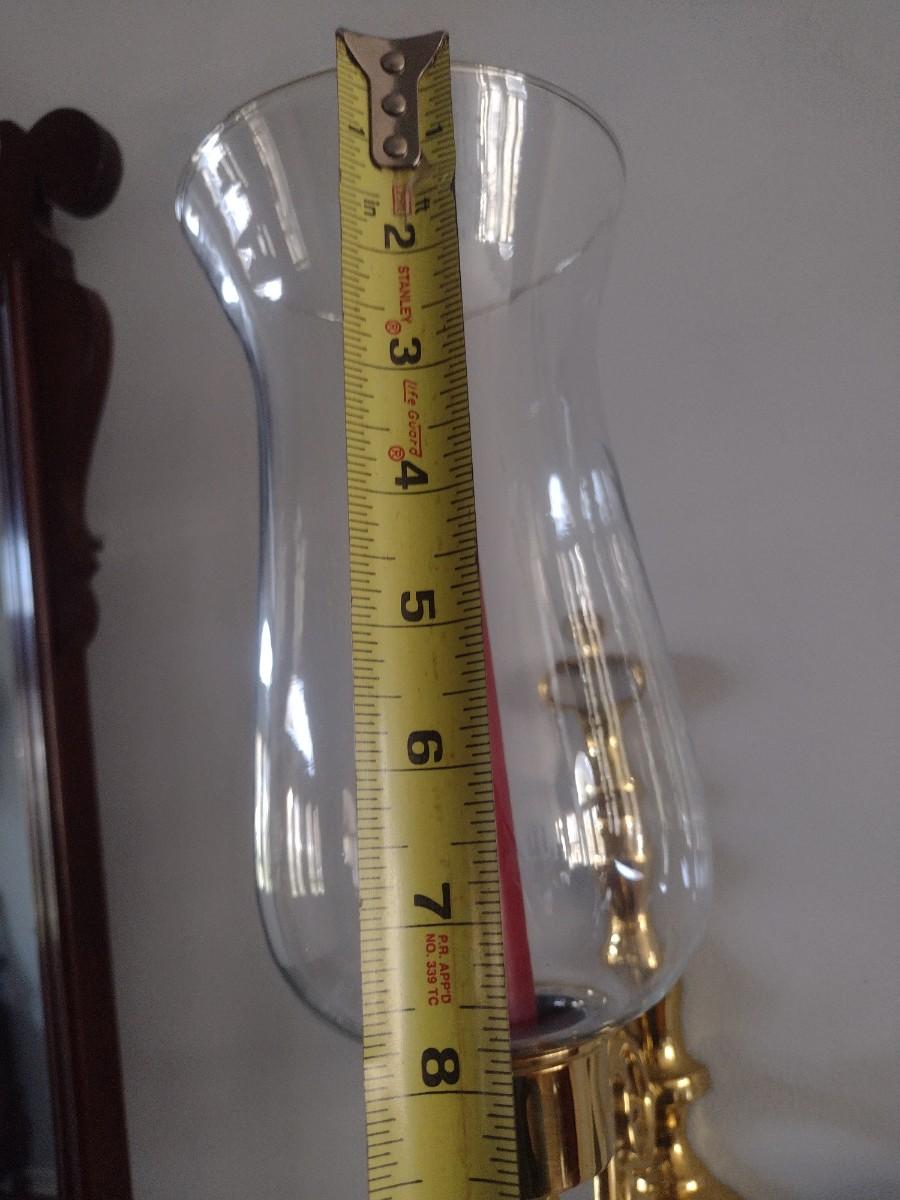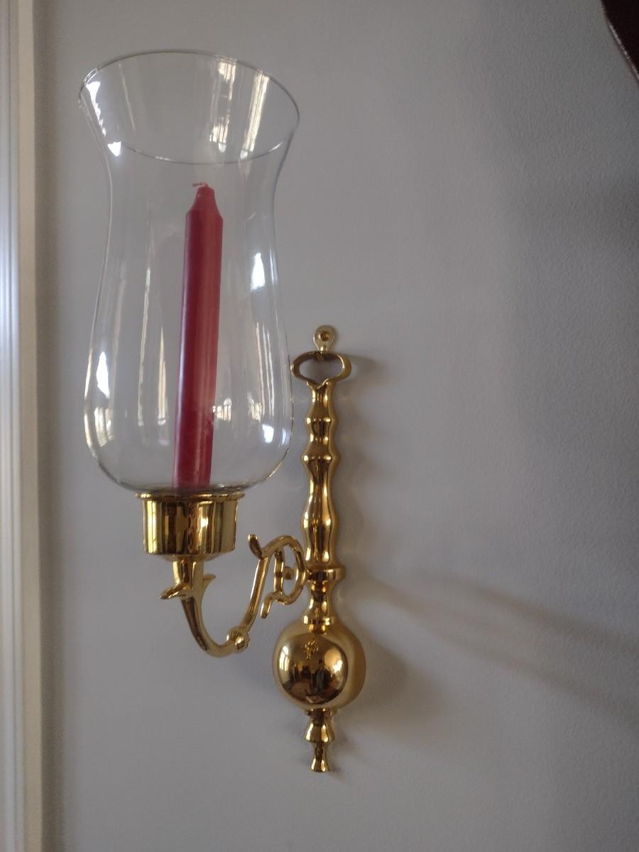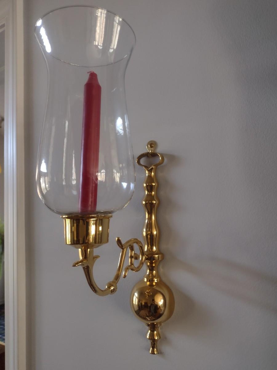 Pair of Matching Brass Single Arm Candelabra Wall Sconces with Clear Glass Shades