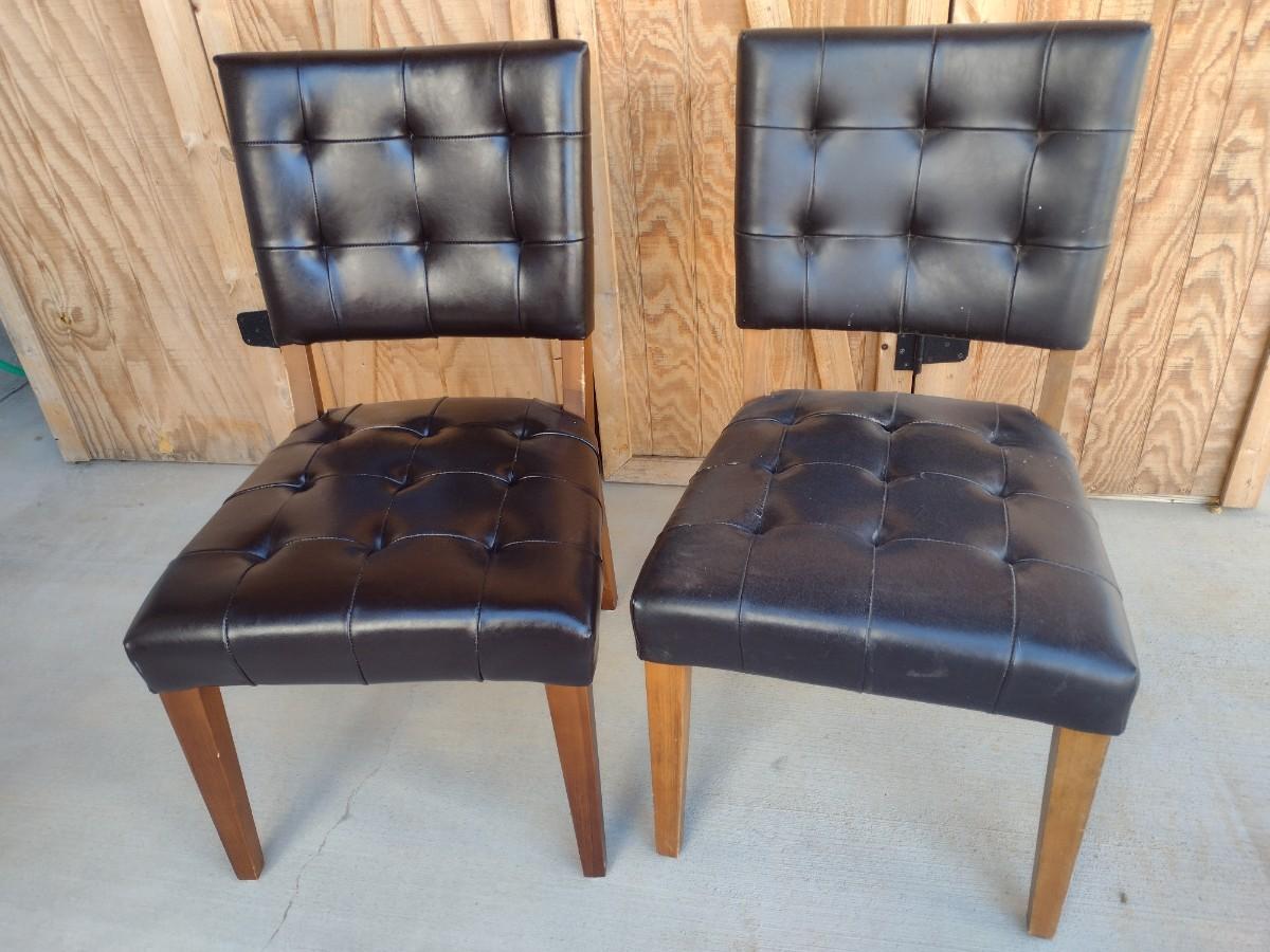 Pair of Matching Button Back and Seat Wood Framed Sitting Chairs