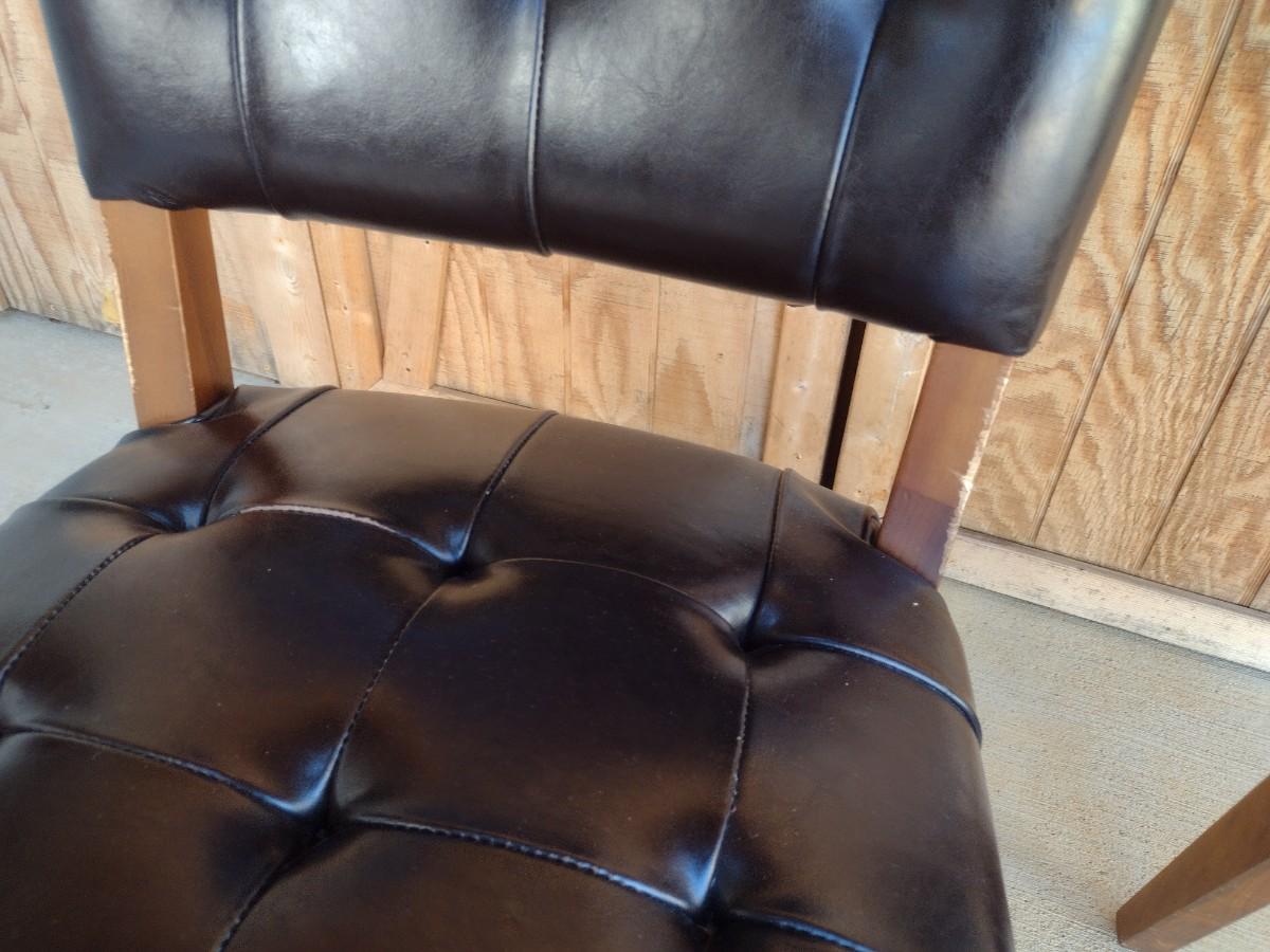 Pair of Matching Button Back and Seat Wood Framed Sitting Chairs. Chair on right has some color fade and scratches as shown.