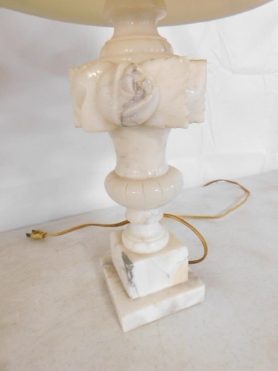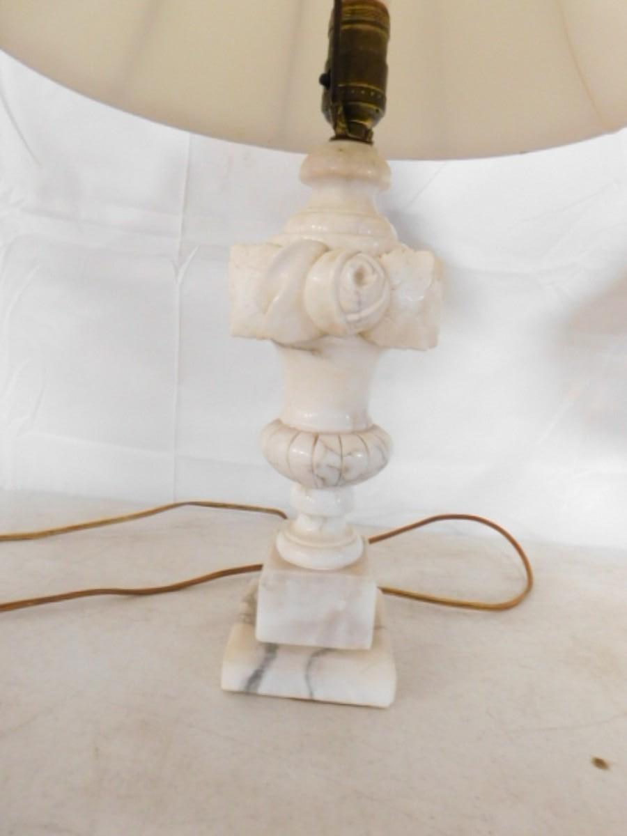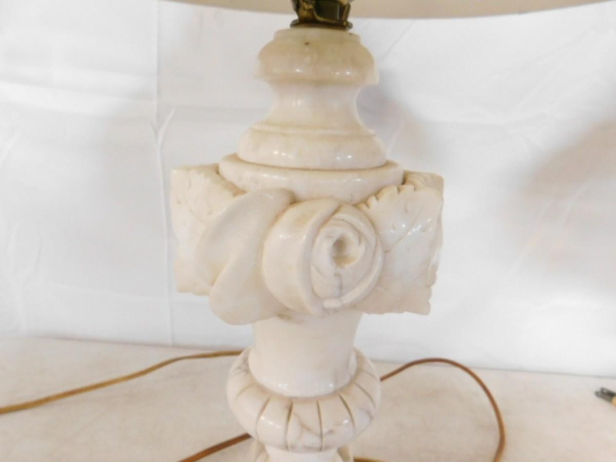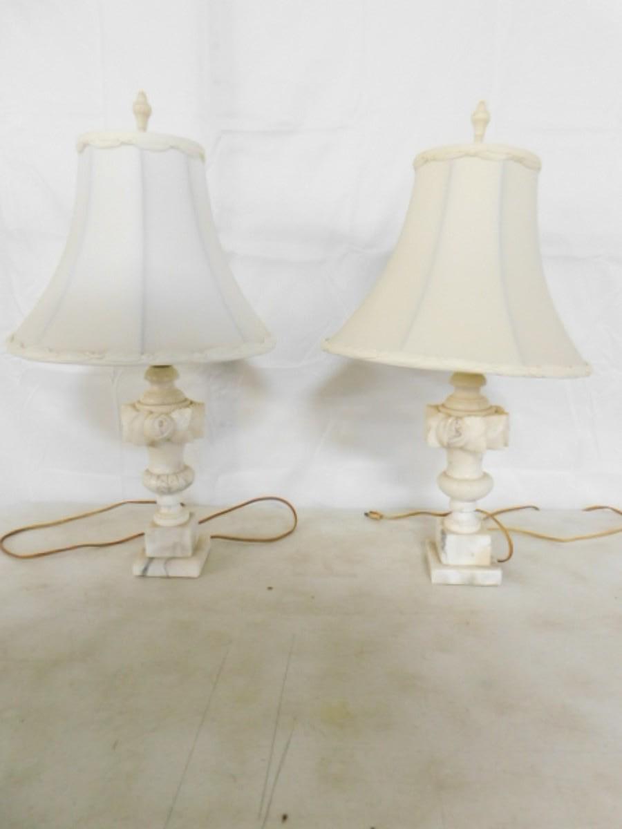 Pair of Matching Carved Marble Post Lamps
