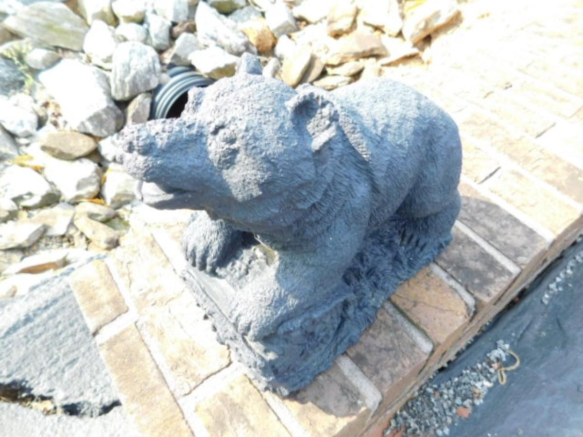 Pair of Matching Concrete Bear Statuettes. One bear has a chipped ear as shown