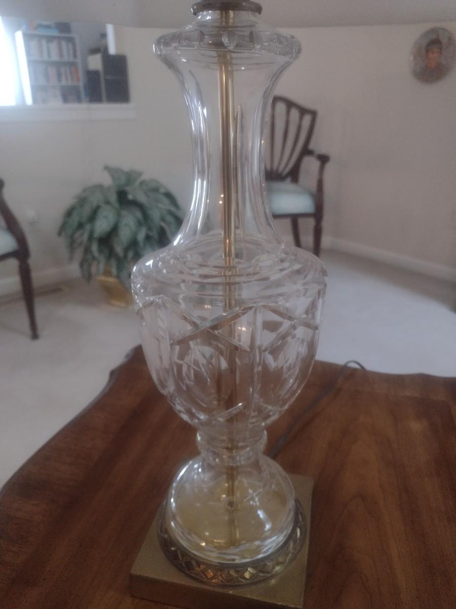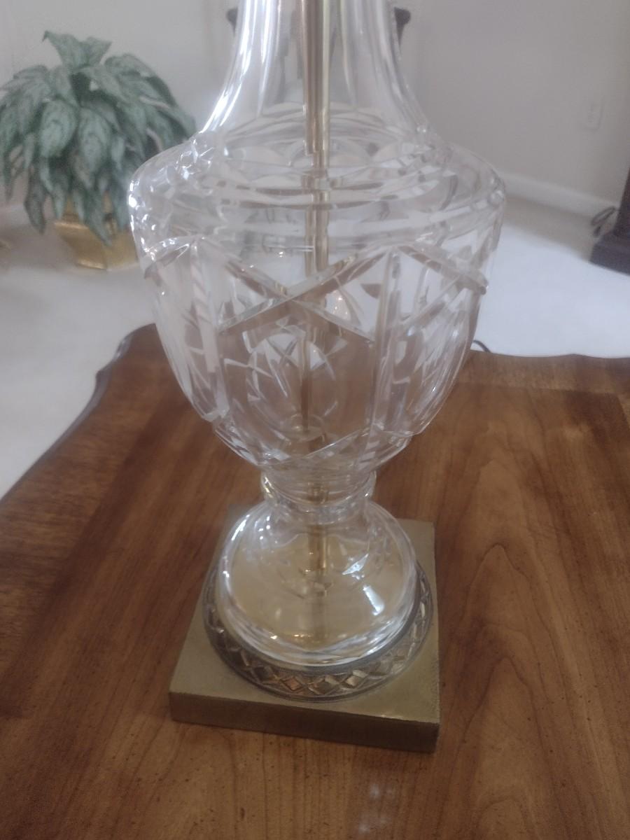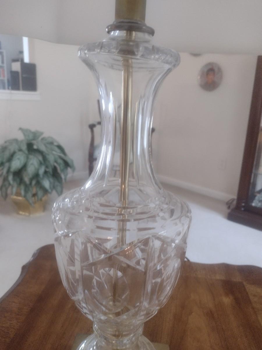 Pair of Matching Crystal Glass Table Lamps with Shades