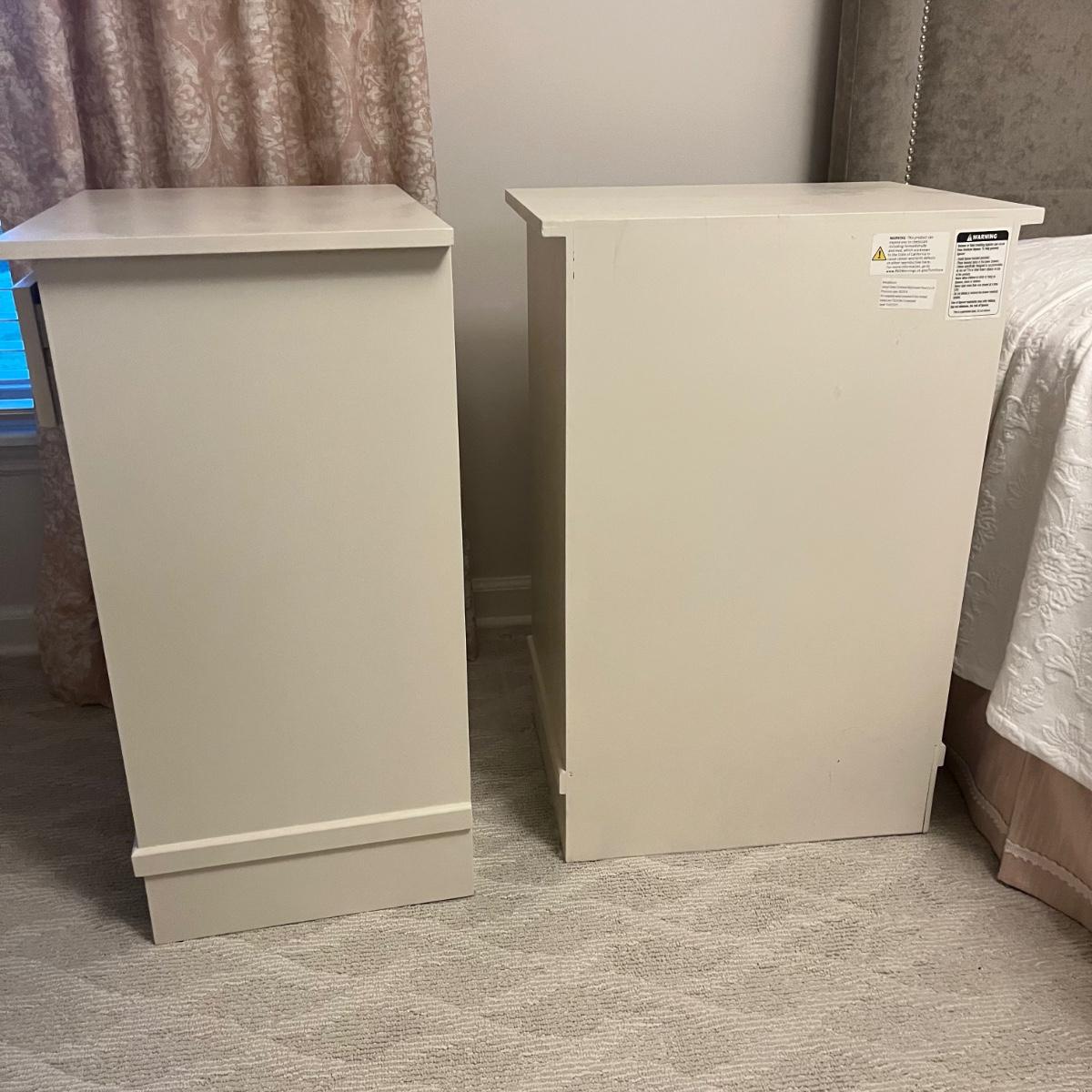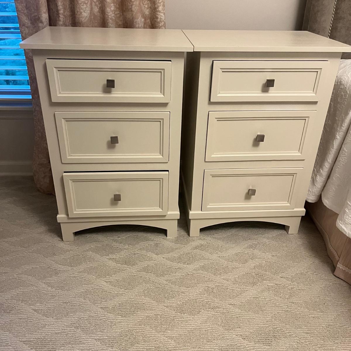 Lot includes two matching end tables with three drawers each. Tables measure 15” x 20” x 30”H and are wood composite.