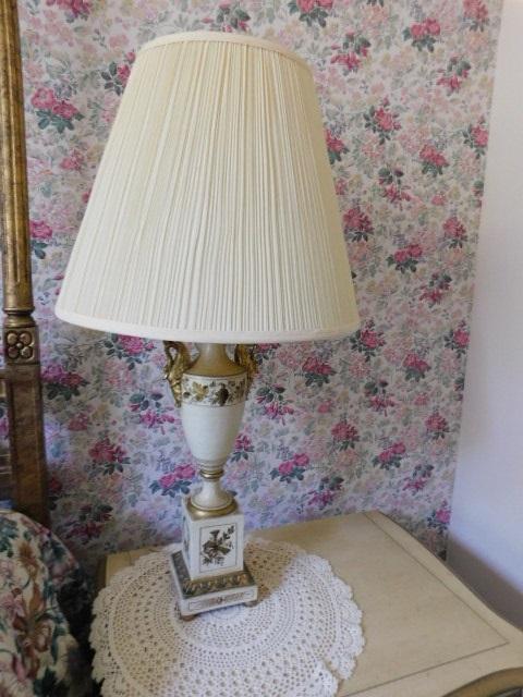 Pair of Matching French Country Porcelain Post Table Lamps 31"