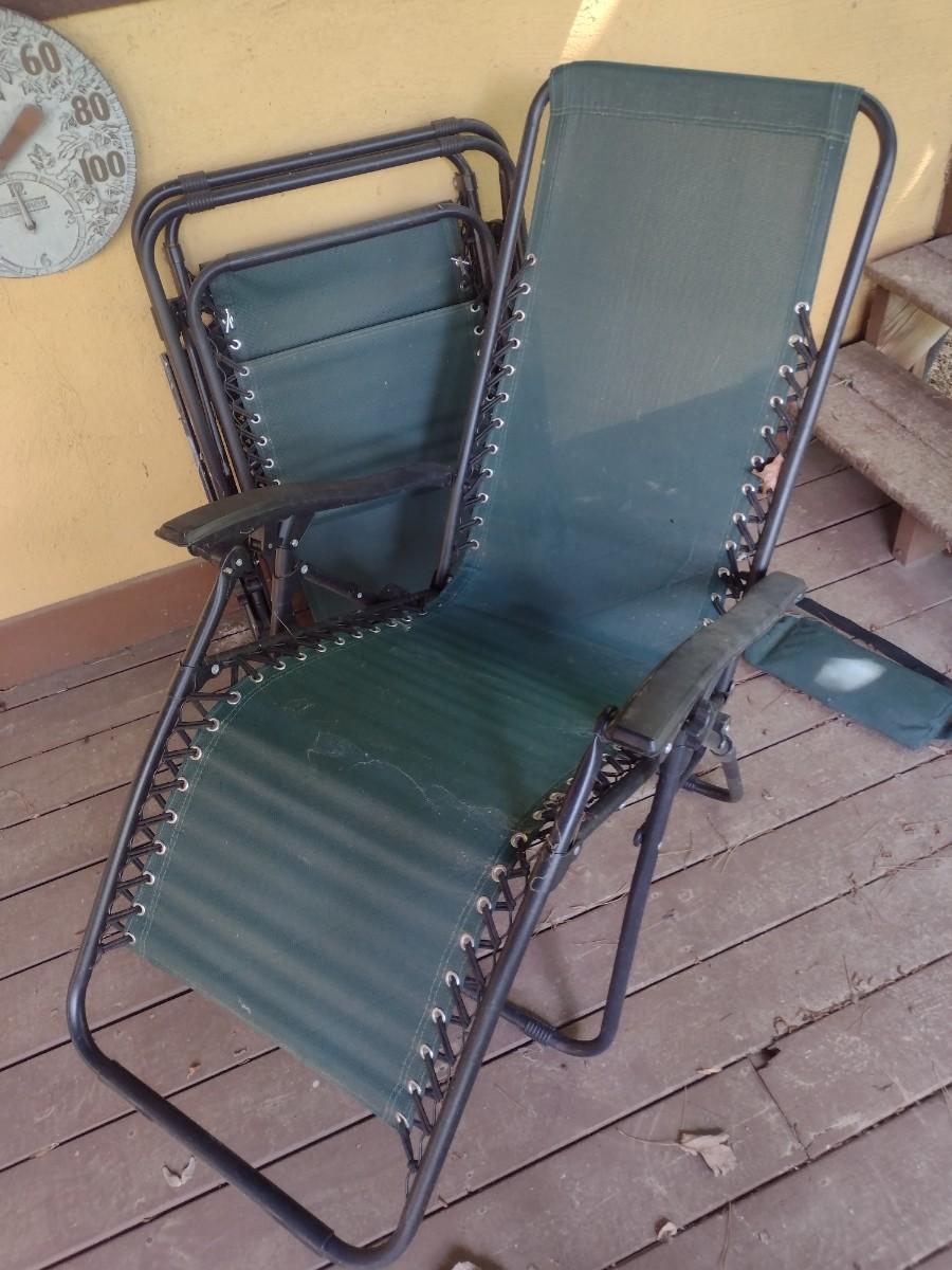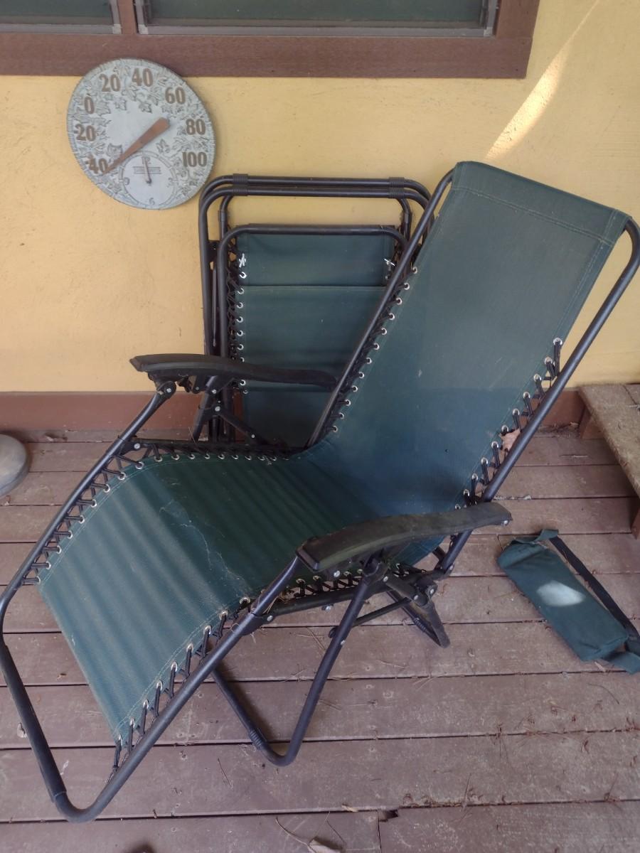 Pair of Matching Gravity Lawn Reclining Chairs. Lower-level item