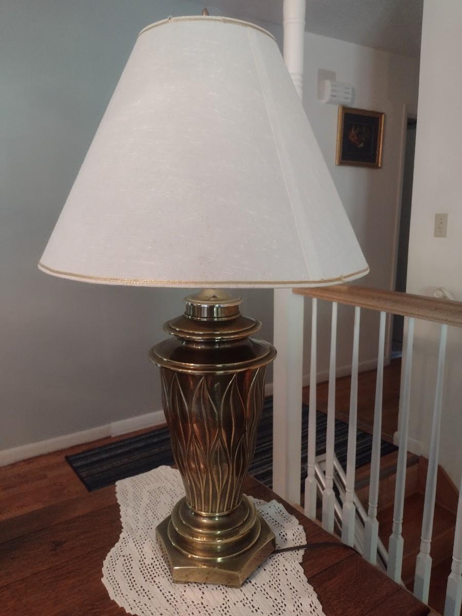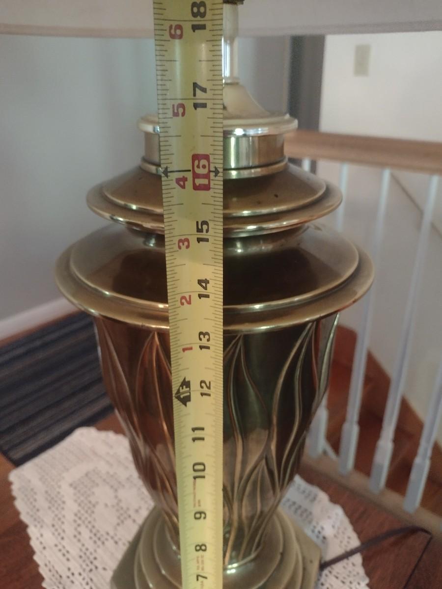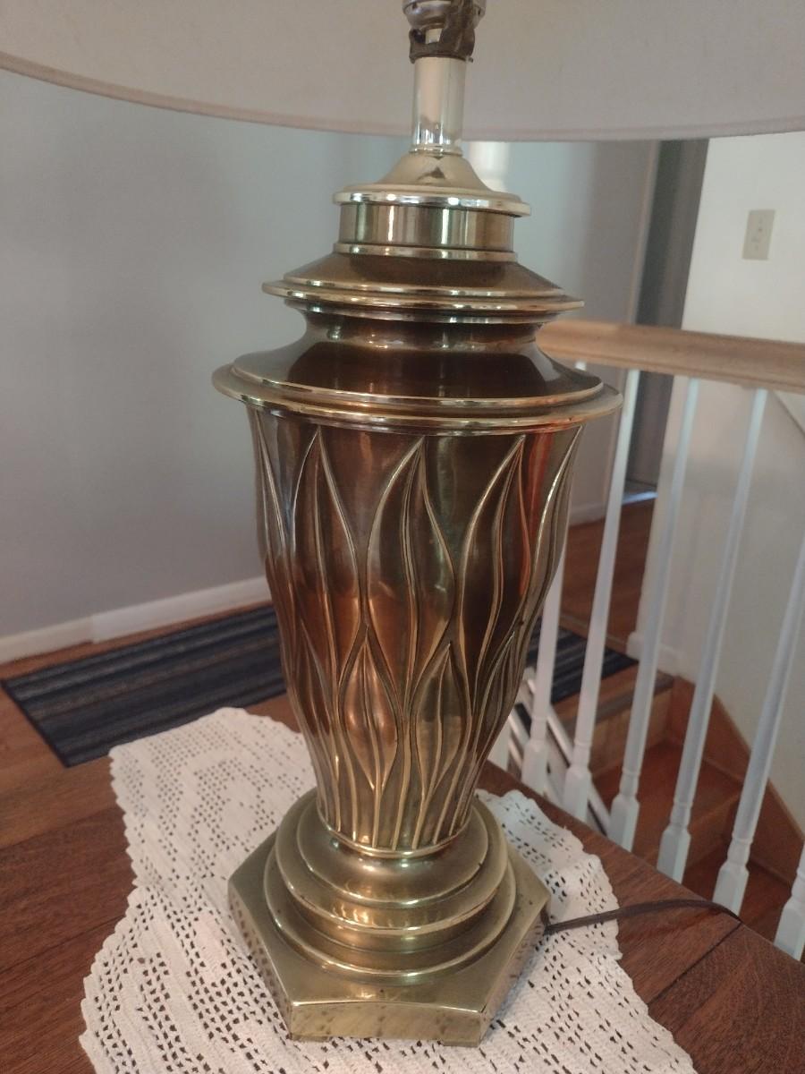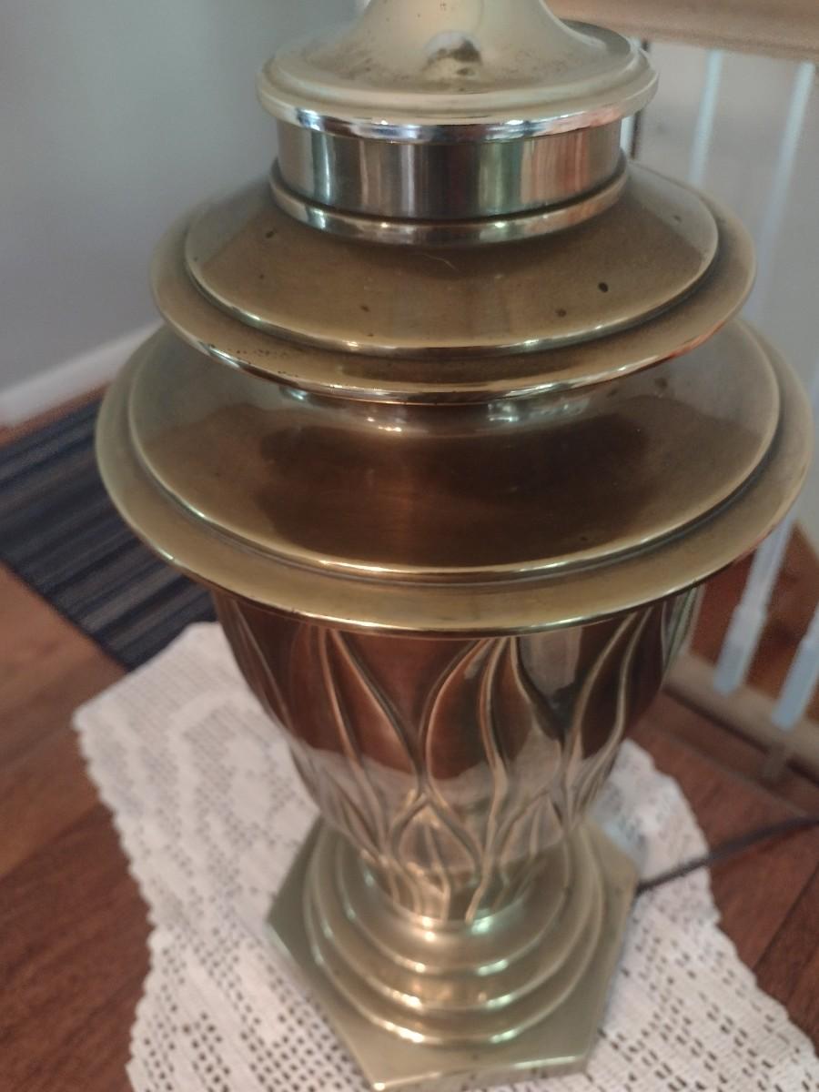 Pair of Matching Heavy Brass Urn Shaped Table Lamps with Shades