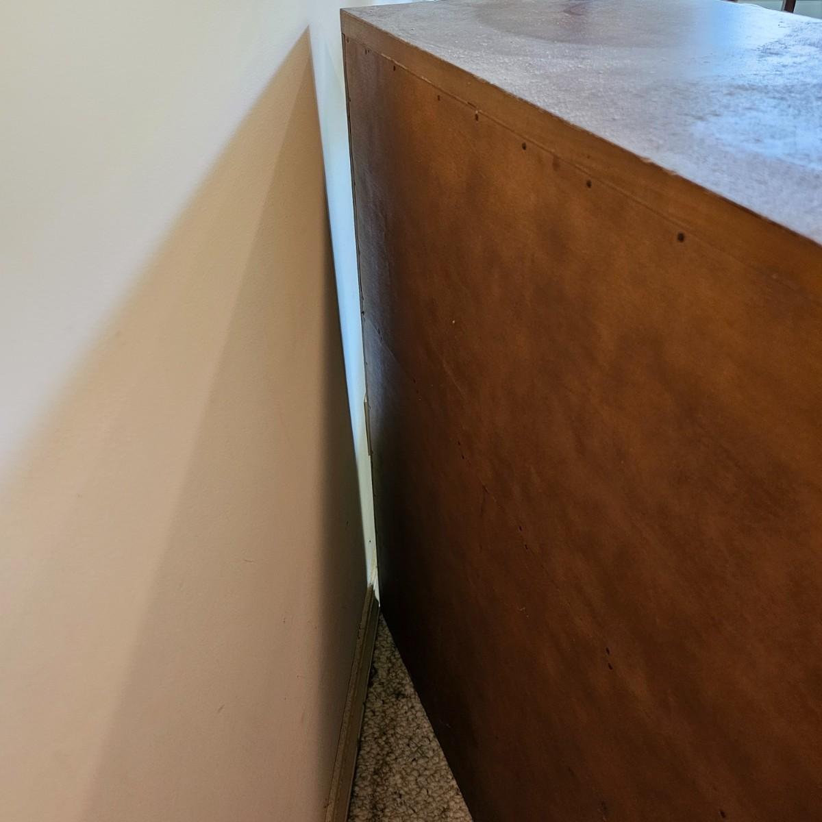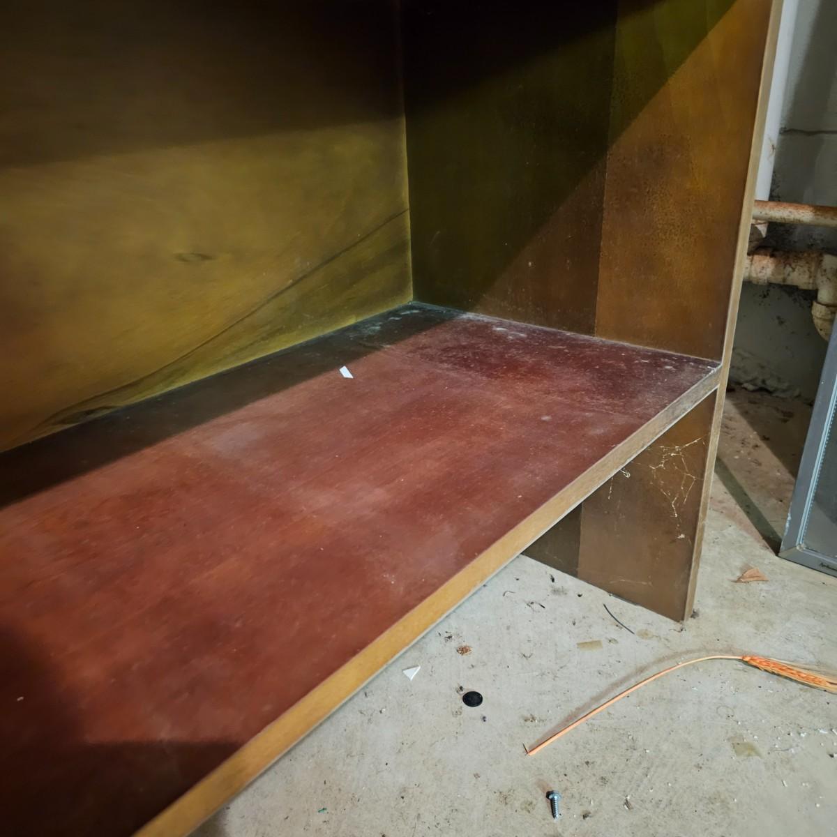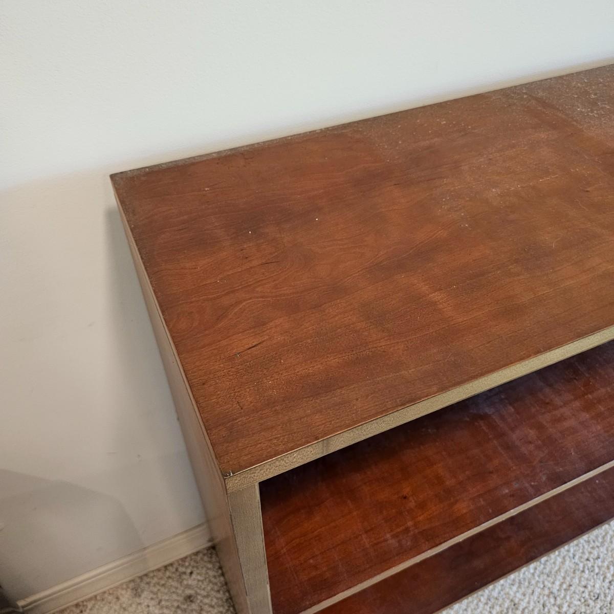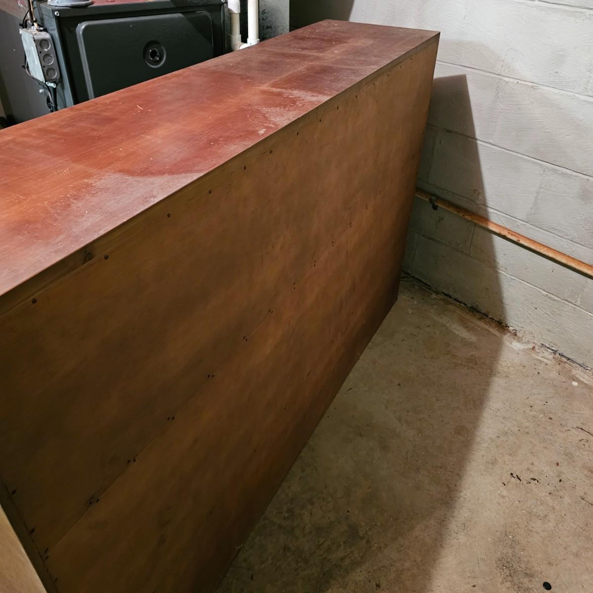 Two matching two shelf units in dark wood. Each piece measures 60" x 14' x 37"H. Units are in adjoining rooms in basement. See photos for details. Local pickup only. Winning bidder must bring assistance to help move and load this item due to its weight and/or size.