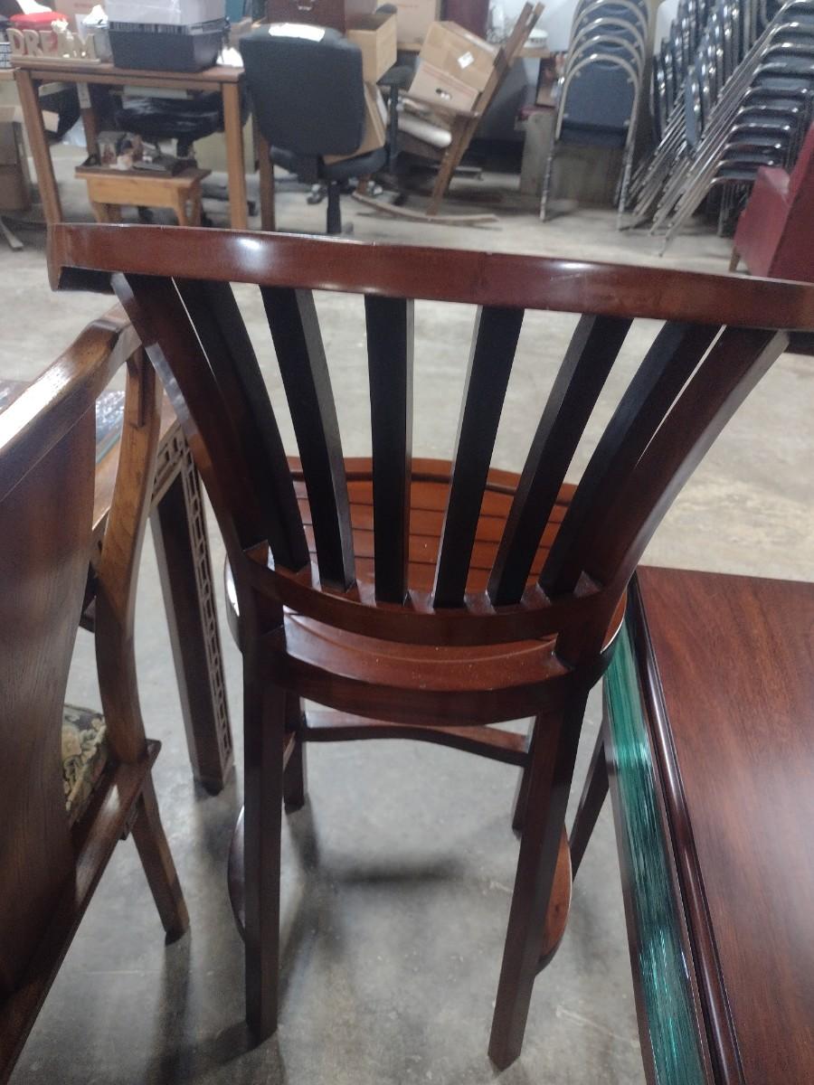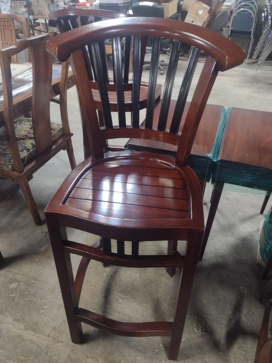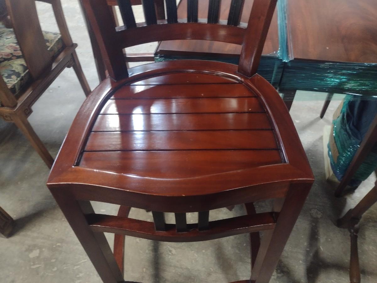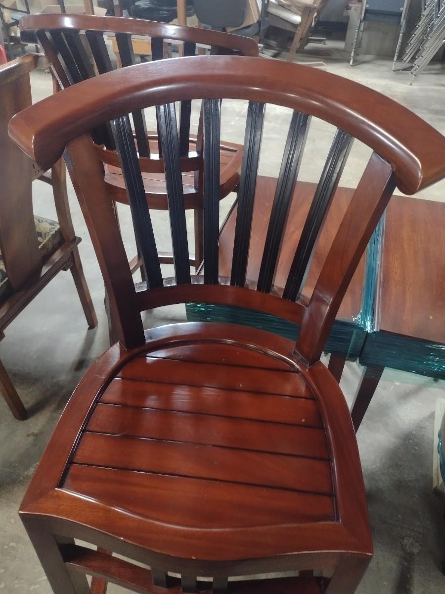 Pair of Matching Mahogany Finish Slat Back Bar Stools Stationary Design