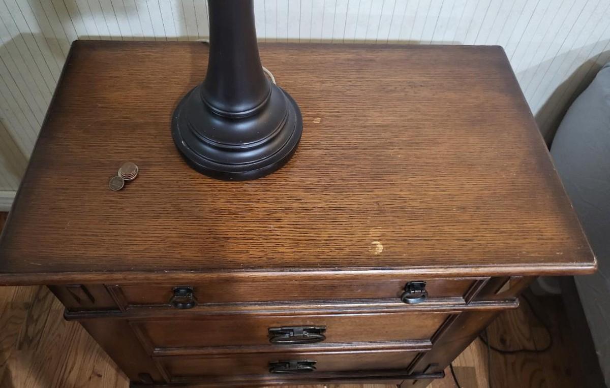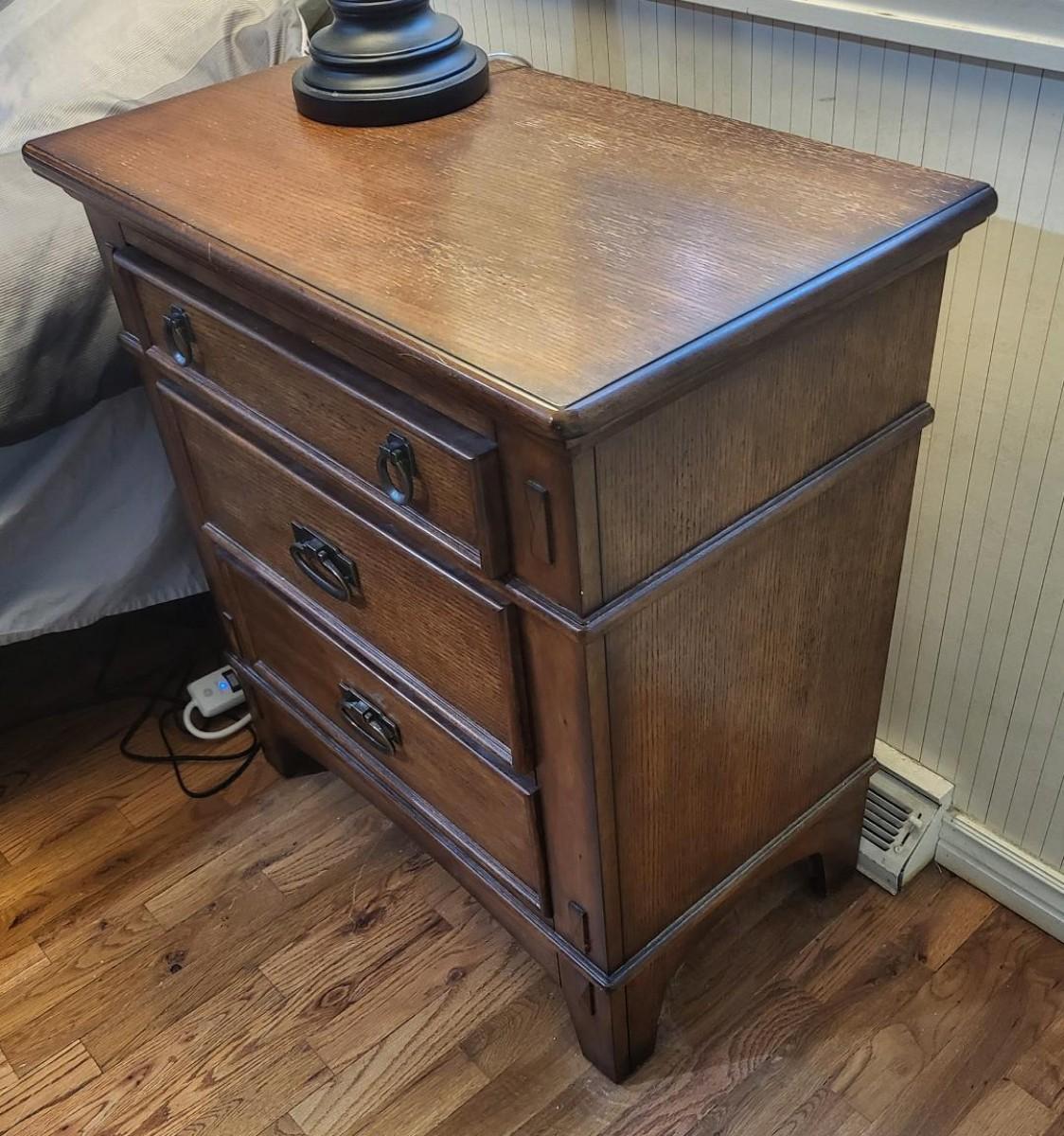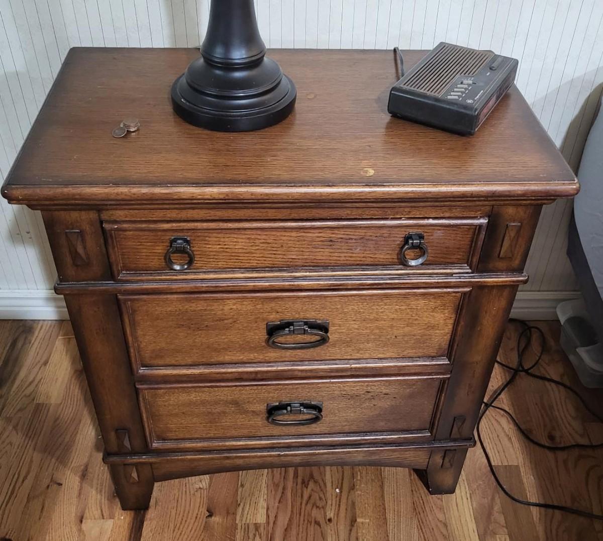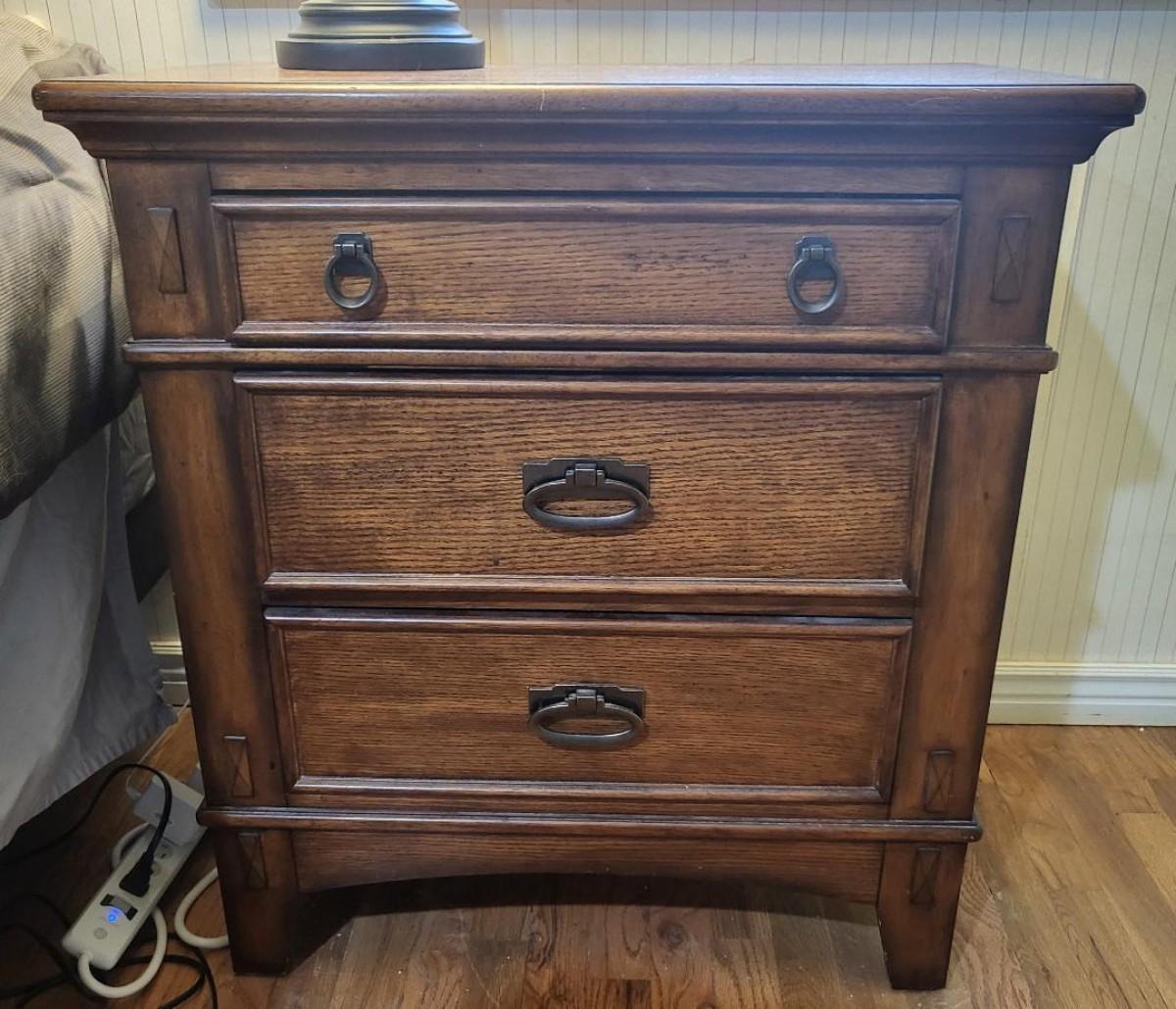 2 nightstands, each with working drawers. One dresser looks new, other dresser has some marks on top (see photos).